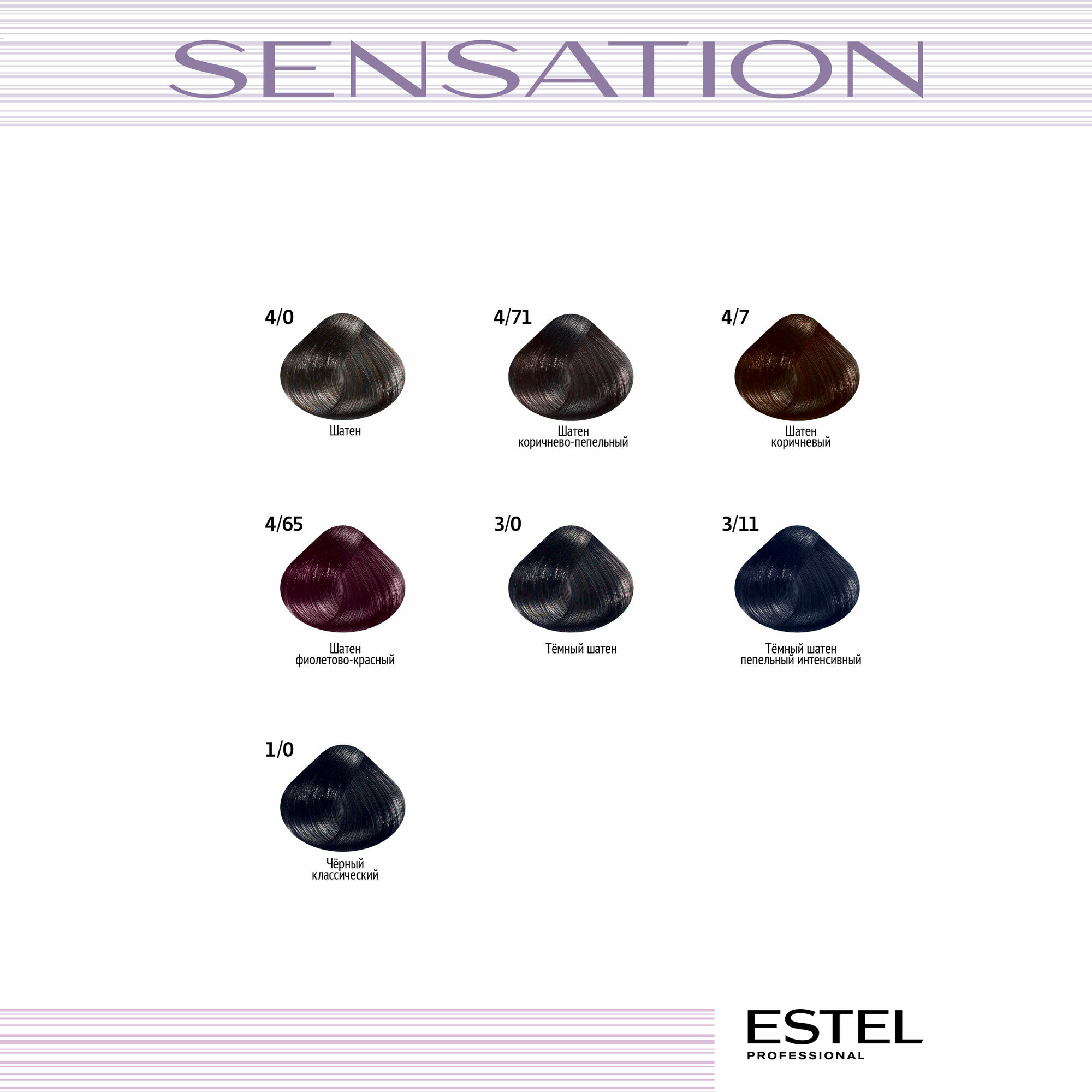 ESTEL Sensation безаммиачная крем-краска для волос, 4/0 шатен, 60 мл