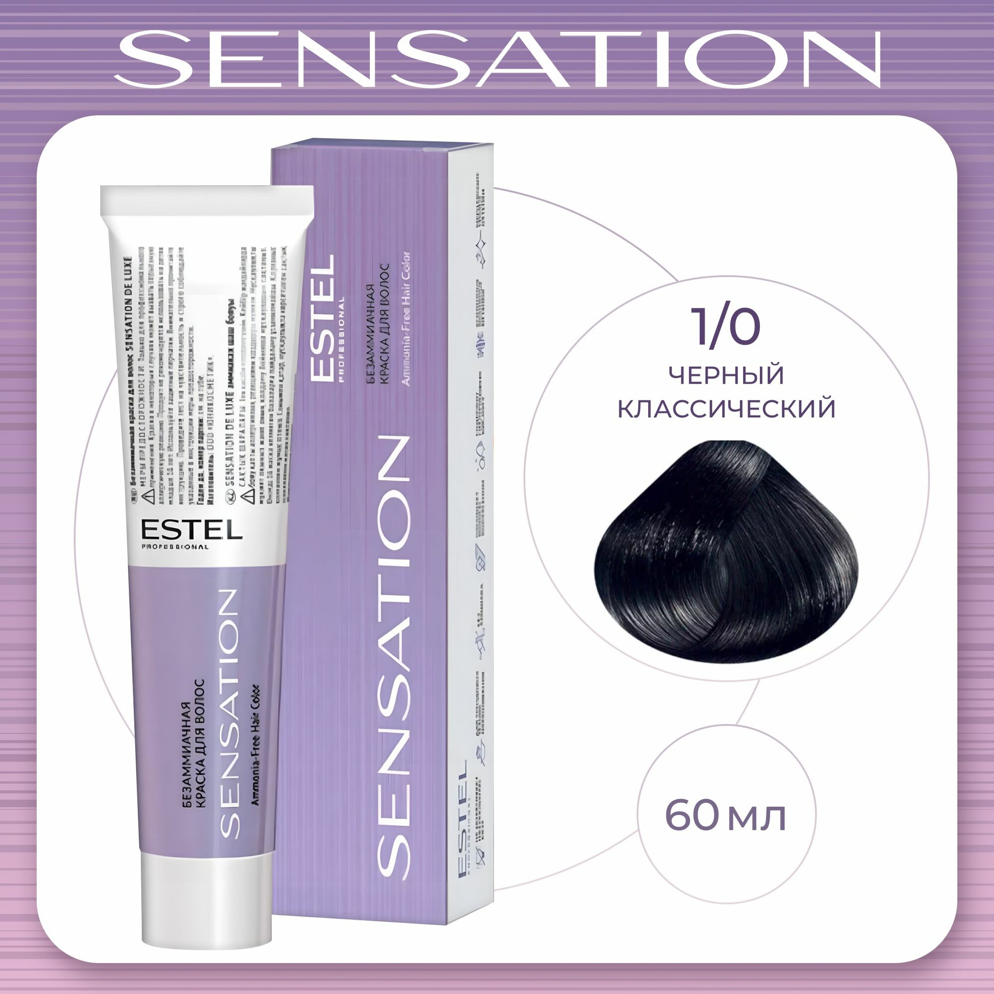 Безаммиачная краска для волос SENSATION DE LUXE 1/0 чёрный классический (60 мл)