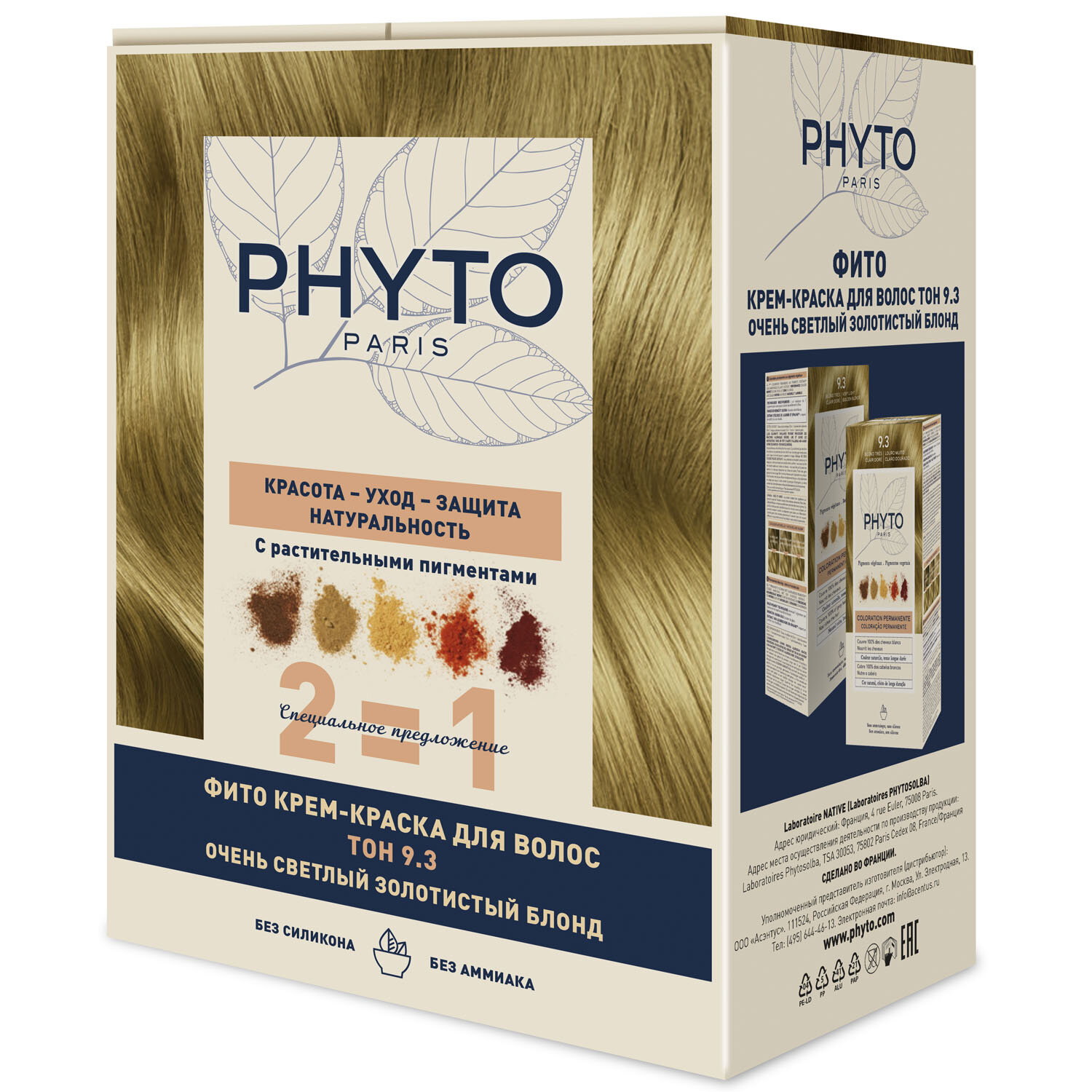 Фито сдвойка фито крем-краска для волос тон 9.3 Очень светлый золот блонд 50/50/12 x 2 интересное: