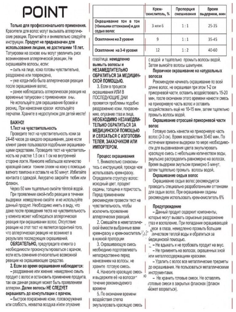 Купить POINT. Промо Краска для волос для проф.прим., тон №7.61, Средне-русый фиол-пепел. + 6% оксид, 100/100 мл*