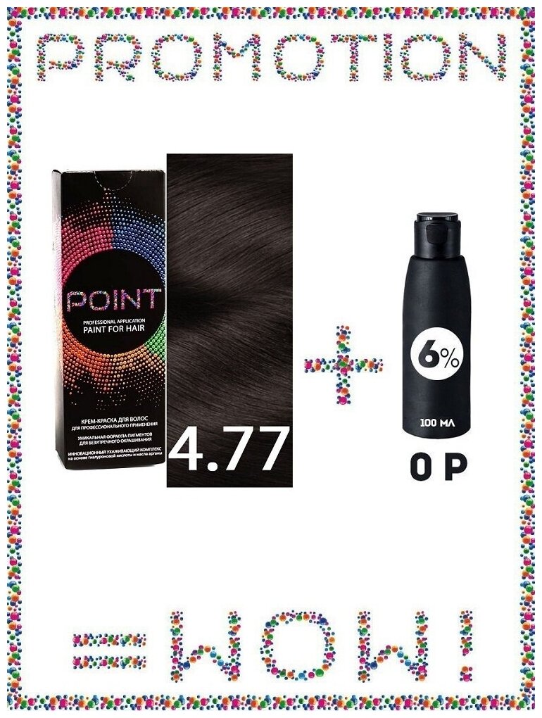 Купить POINT. Промо Краска для волос для проф.прим., тон №4.77, Шатен коричневый интенсив + 6% оксид, 100/100мл