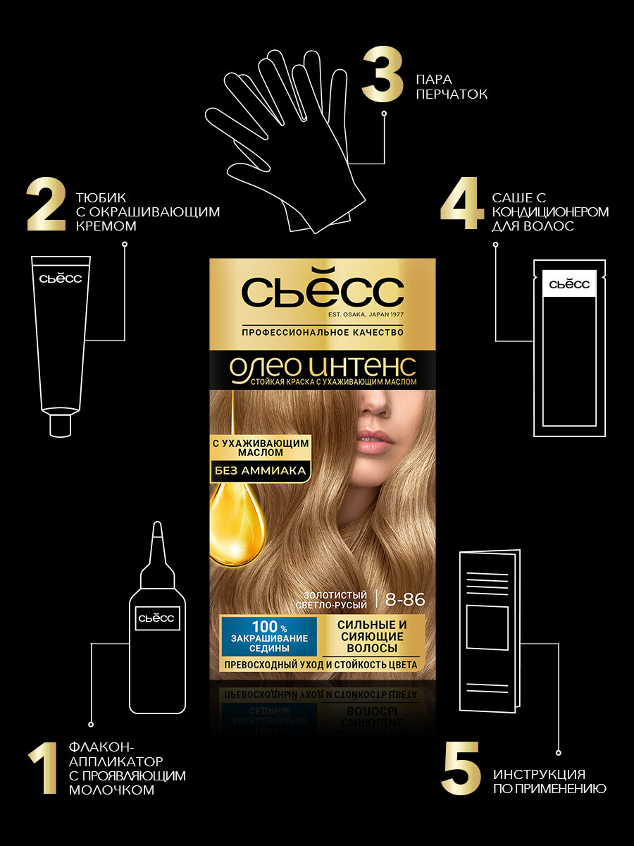 СохранитьСьесс Олео Интенс стойкая крем-краска без аммиака 8-86 Золотистый светло-русый, 115 мл интересное: