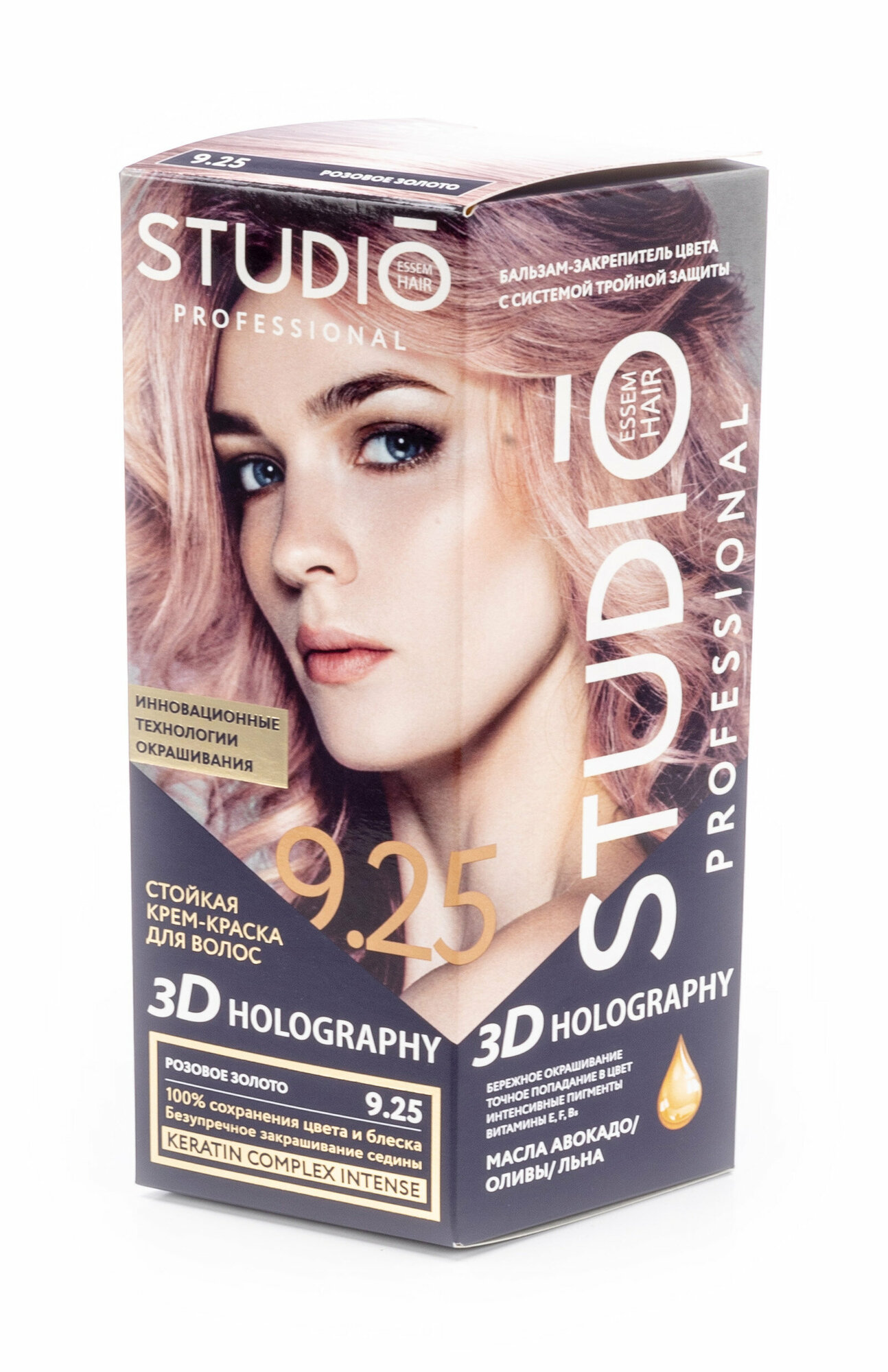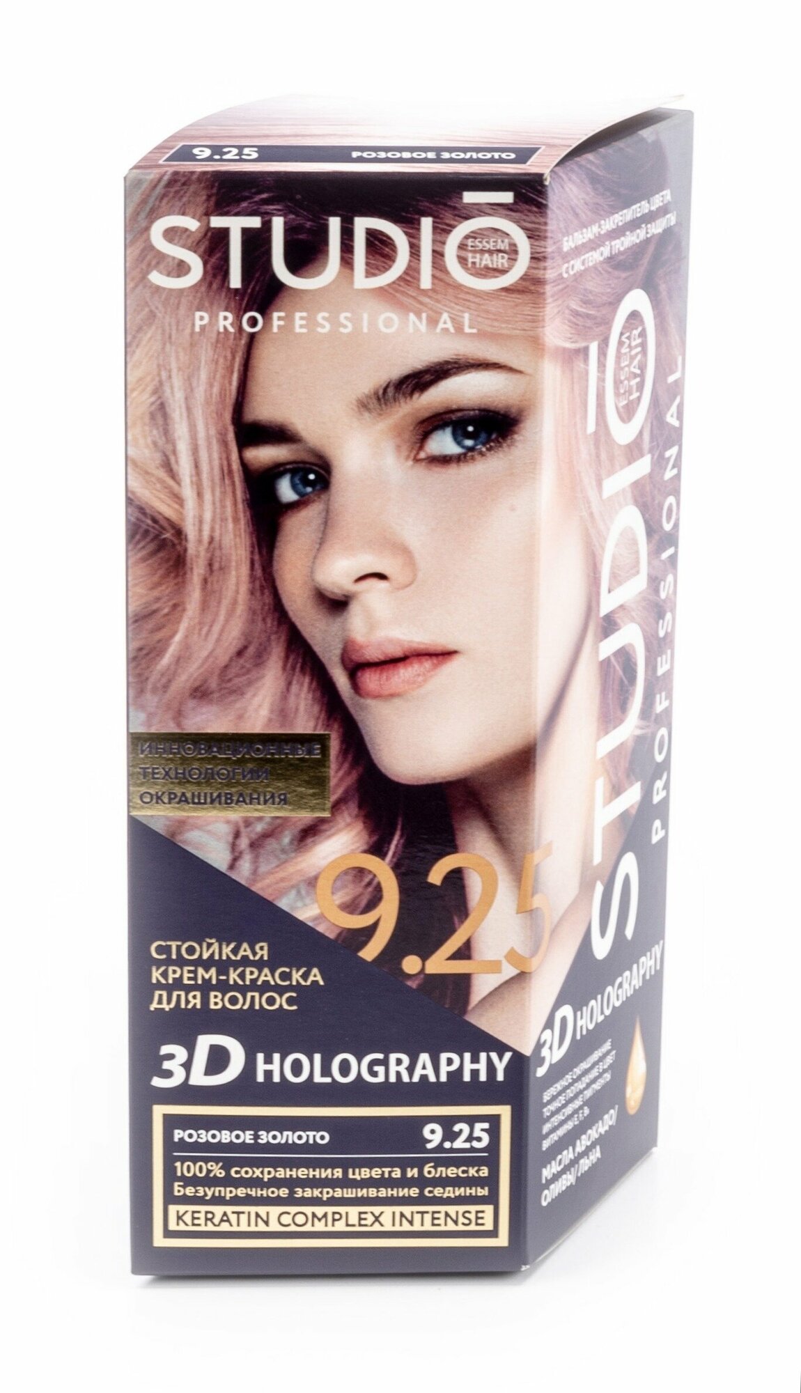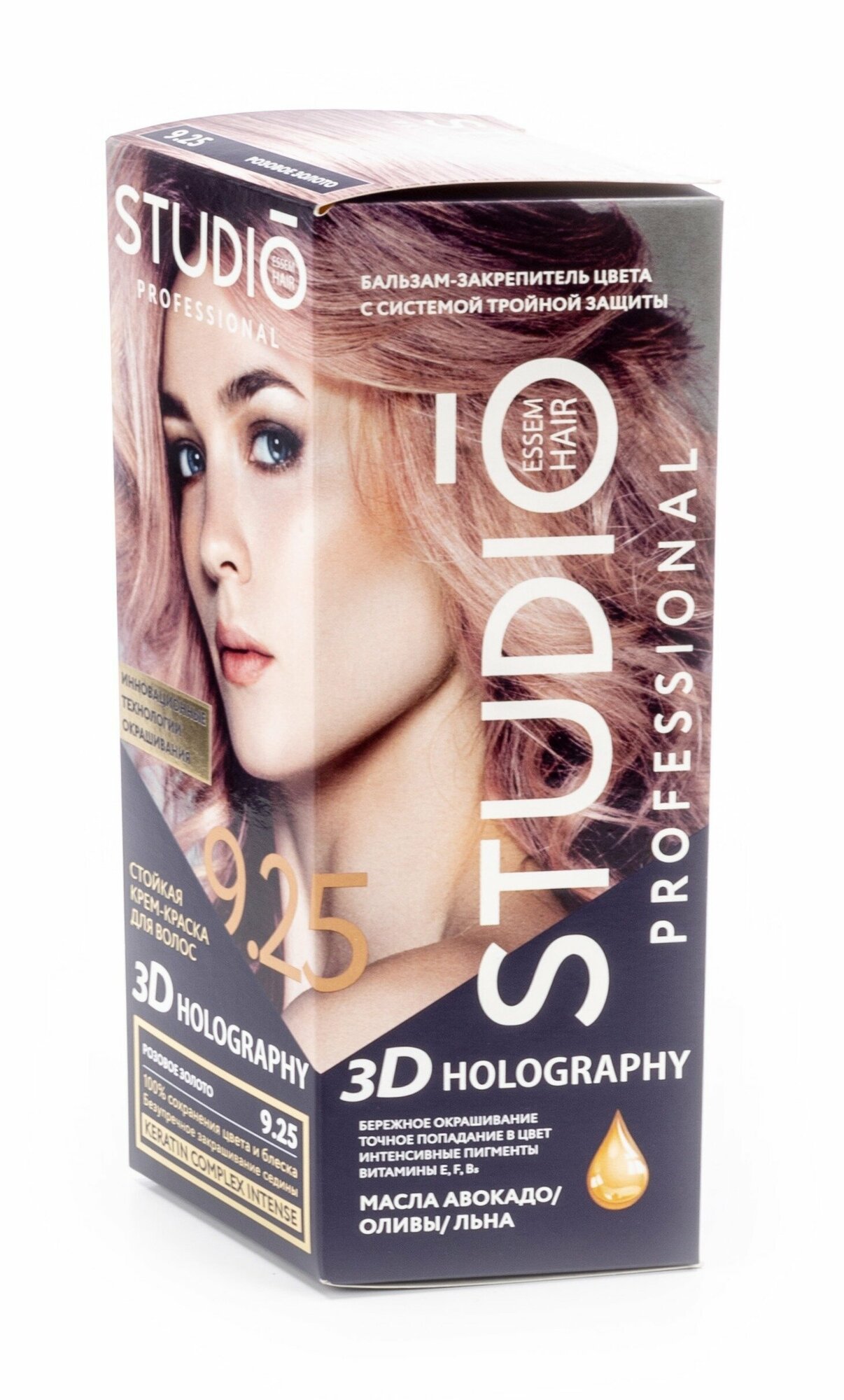 Studio стойкая крем-краска для волос 3Д Голографик 9.25 Розовое золото, 50/50/15 мл