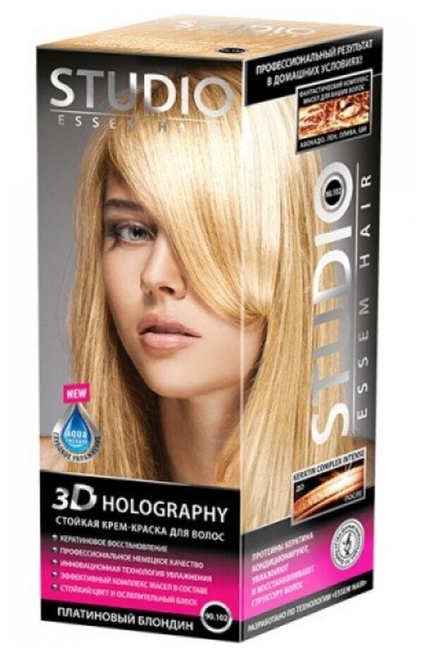 Studio стойкая крем-краска для волос 3Д Голографик 90.102 Платиновый блондин 50/50/15