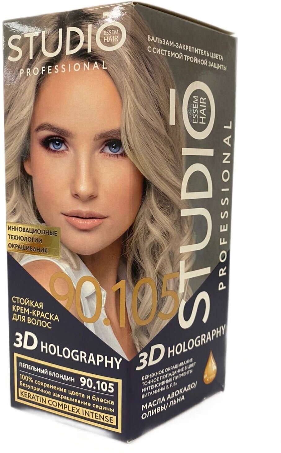 Studio стойкая крем-краска для волос 3Д Голографик 90.105 Пепельный блондин 50/50/15 мл