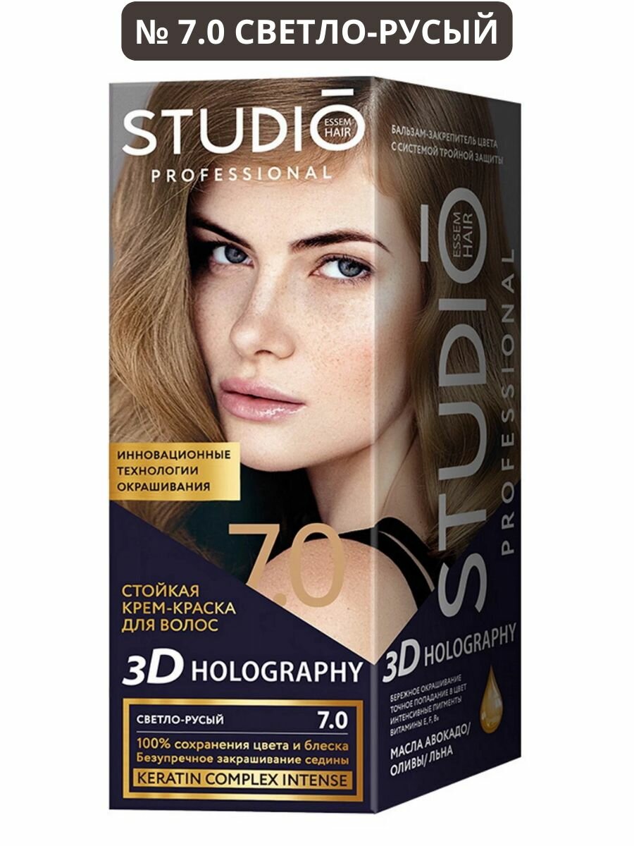 STUDIO PROFESSIONAL Краска для волос 3D Golografic, Тон 7.0 Светло-русый, 115 мл