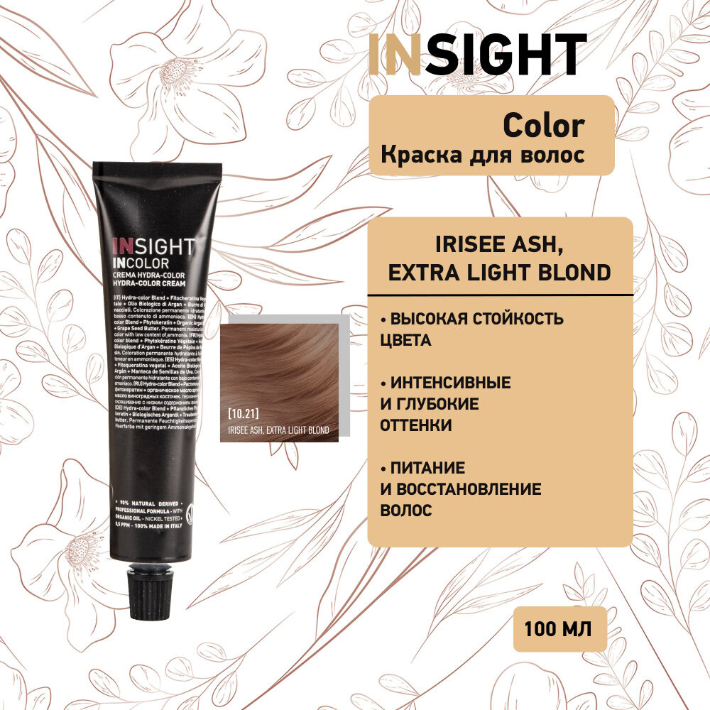 Купить INSIGHT PROFESSIONAL Перманентный краситель для волос 10.21 Перламутрово-пепельный супер светлый блондин INCOLOR, 100 мл