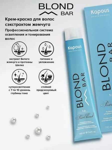 KAPOUS, BLOND BAR, Крем-краска для волос с экстрактом жемчуга, Пепельный перламутровый, 100 мл, BB 1012