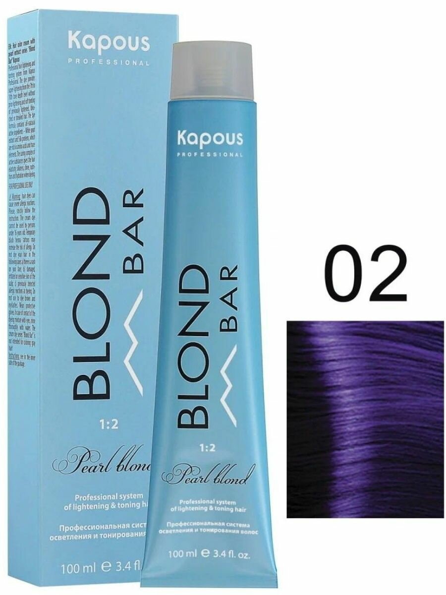 Купить Kapous Professional BB 02 Корректор фиолетовый, крем-краска для волос с экстрактом жемчуга серии Blond Bar, 100 мл