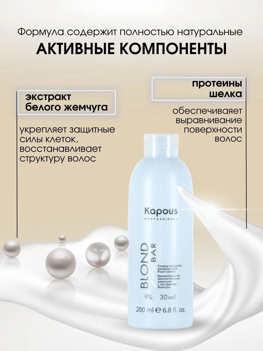 KAPOUS, BLOND BAR, Blond Cremoxon, Кремообразная окислительная эмульсия с экстрактом Жемчуга, 9%, 200 мл