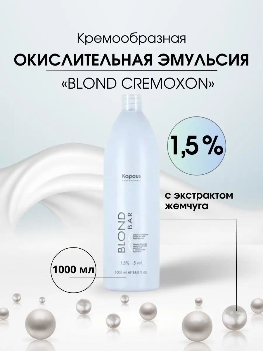 KAPOUS, BLOND BAR, Blond Cremoxon, Кремообразная окислительная эмульсия с экстрактом Жемчуга, 3%, 1000 мл