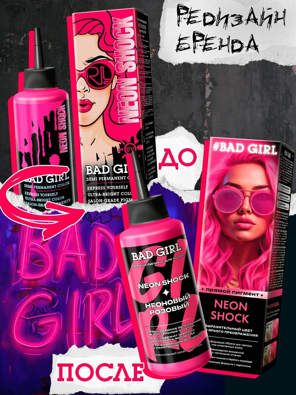 Купить Бэд Герл (Bad Girl) Оттеночный бальзам, яркое окрашивание - пигмент прямого действия Neon Shock (неоновый розовый)