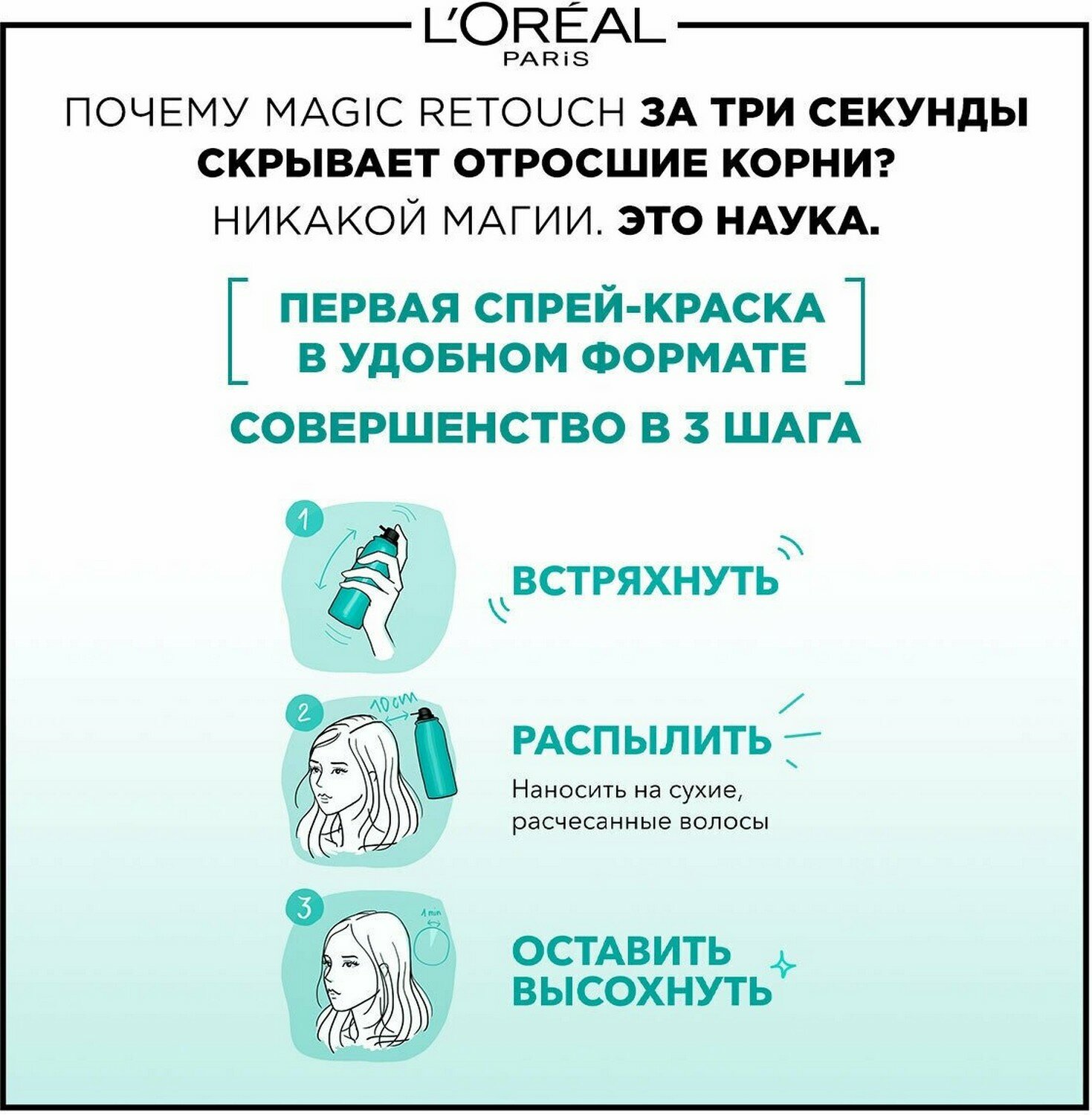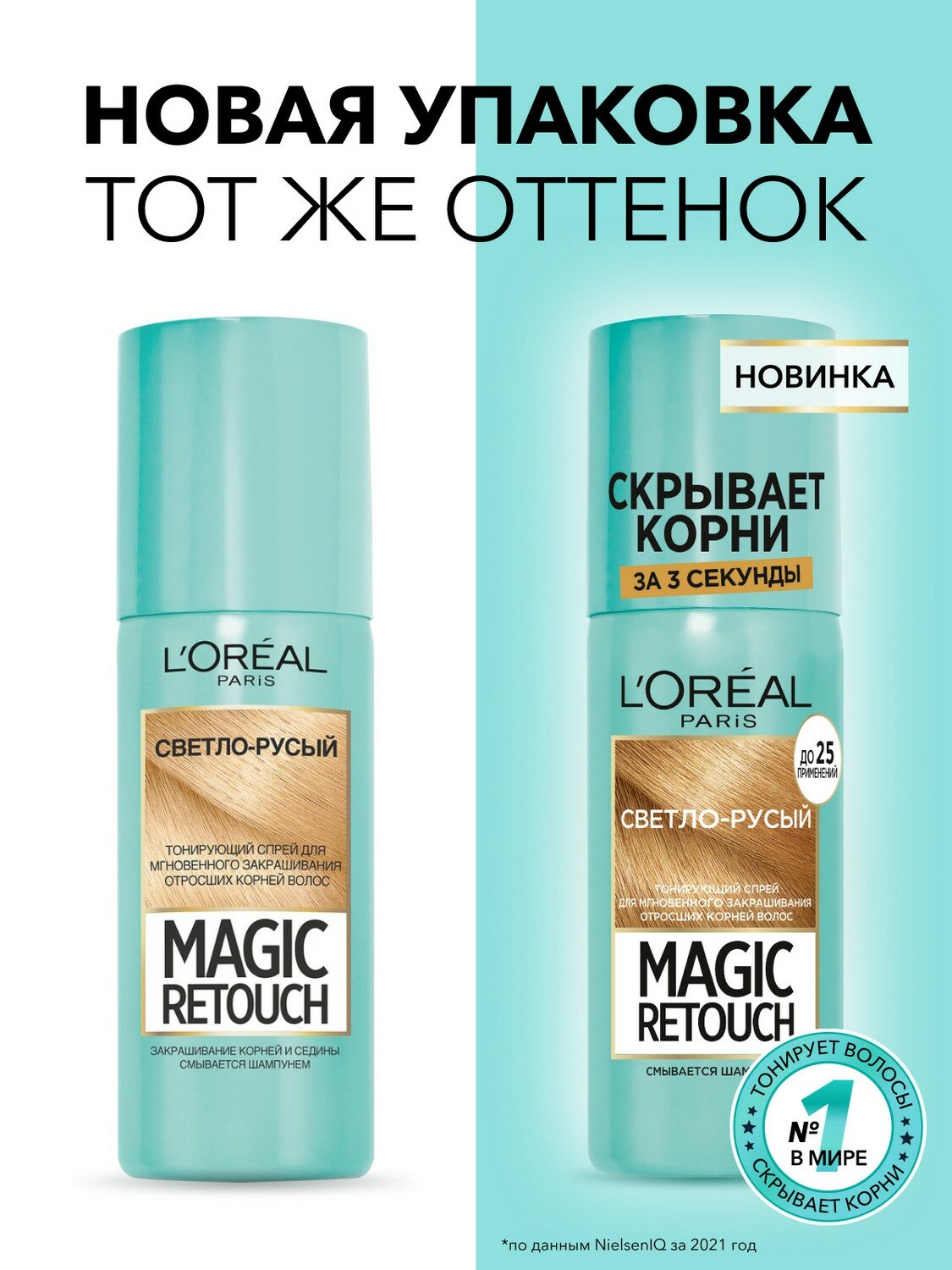 L'Oreal Paris Тонировочный спрей Magic Retouch Тон Русый, для моментального окрашивания корней волос, 75 мл/