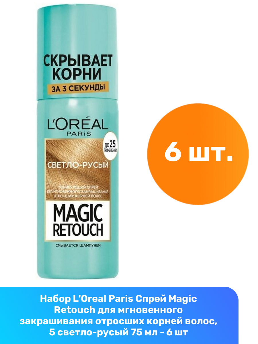 Купить L'Oreal Paris Спрей Magic Retouch для мгновенного закрашивания отросших корней волос, 5 светло-русый 75 мл - 6 шт