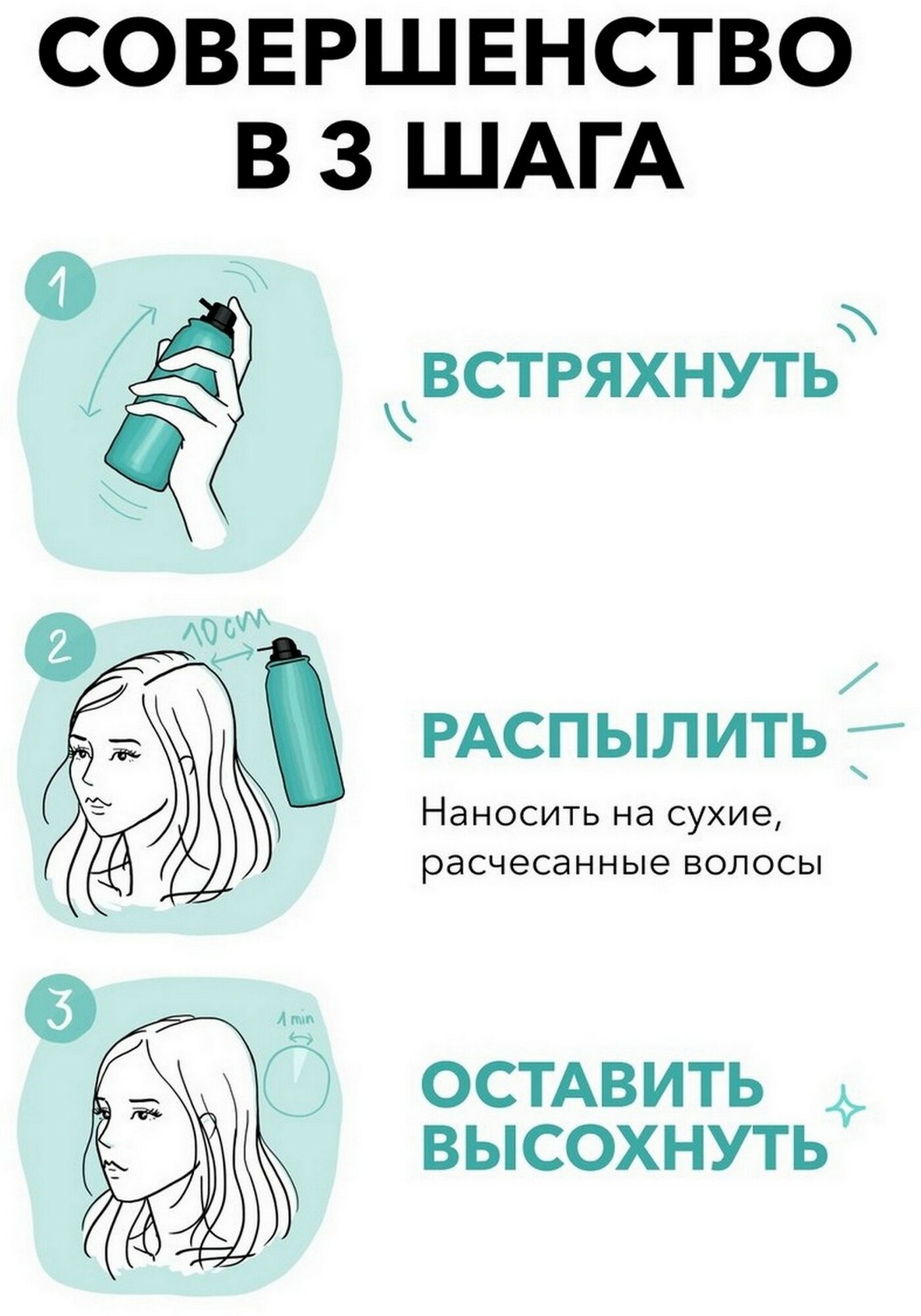 | Способ применения | хорошо взболтайте перед нанесением. Держите продукт вертикально. Наносите на сухие, расчесанные волосы. Распылите на корни волос с расстояния 10 см. Достаточно небольшого количества |