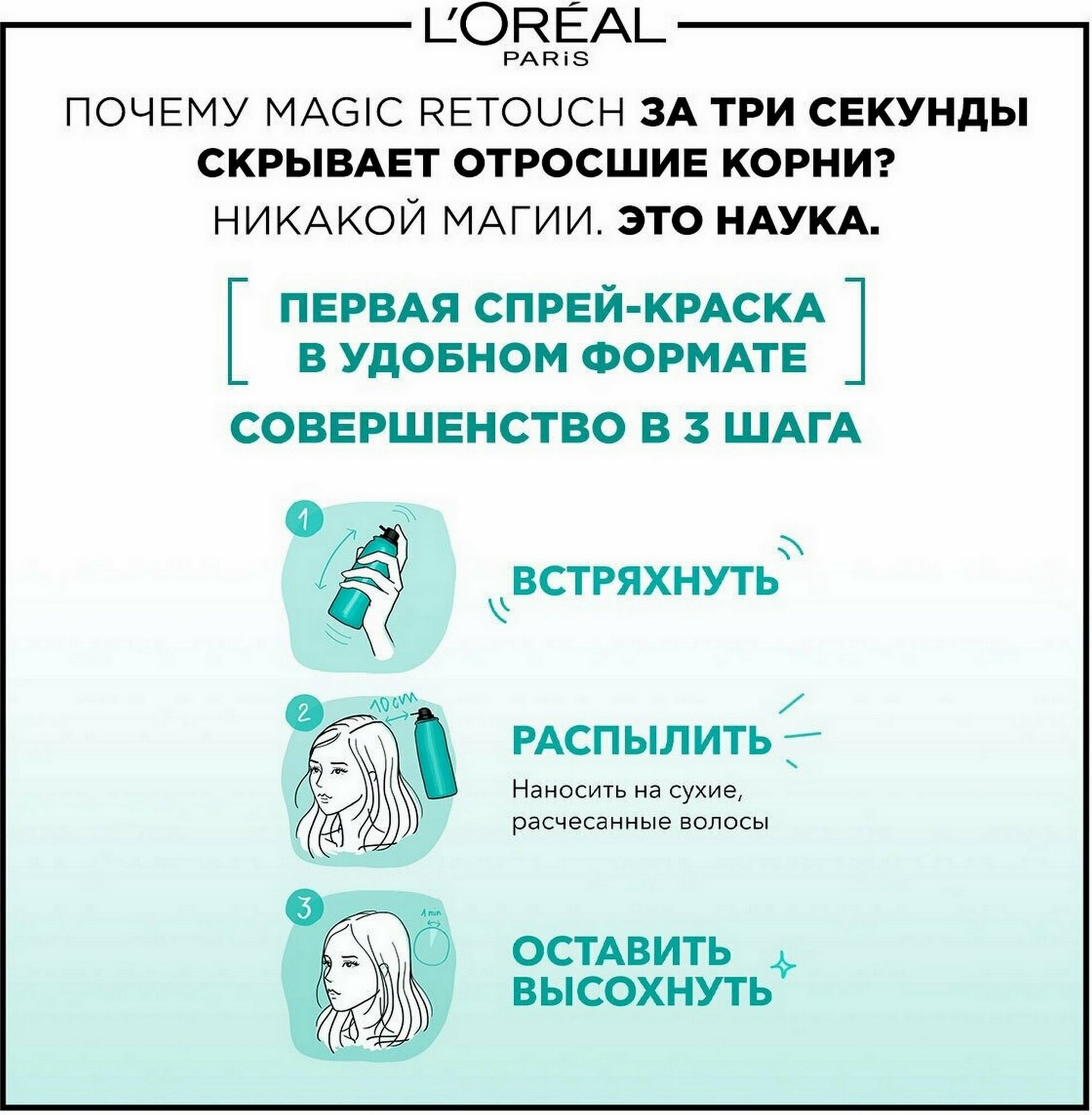 L`Oreal Paris Спрей тонирующий "мэджик ретач", Темно-каштановый, 75мл