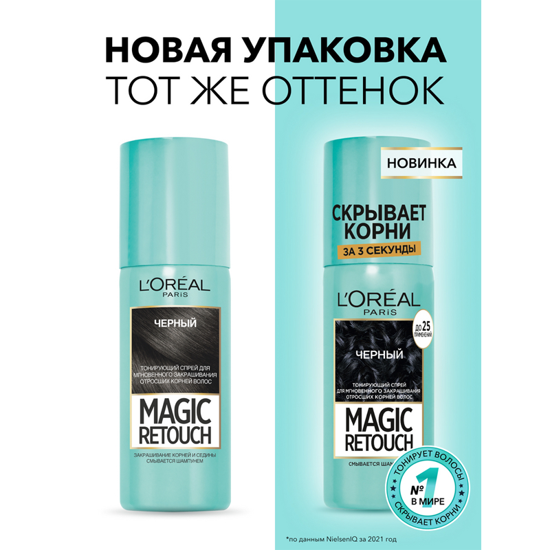 L'OREAL Спрей для корней волос Magic Retouch тонирующий, 1 Черный