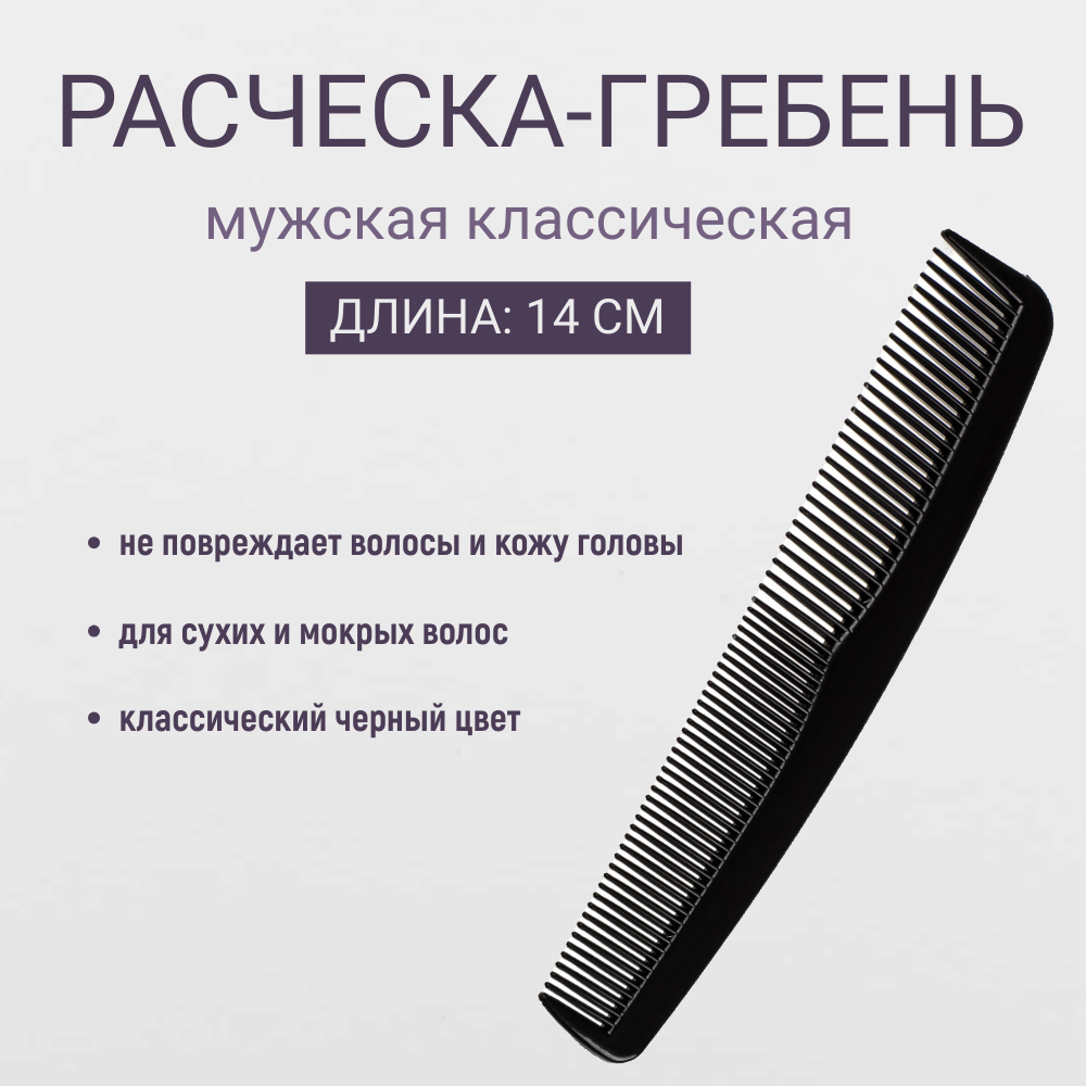 ЮниLook Расческа гребень для волос мужская, для бороды, пластик, длина 14 см
