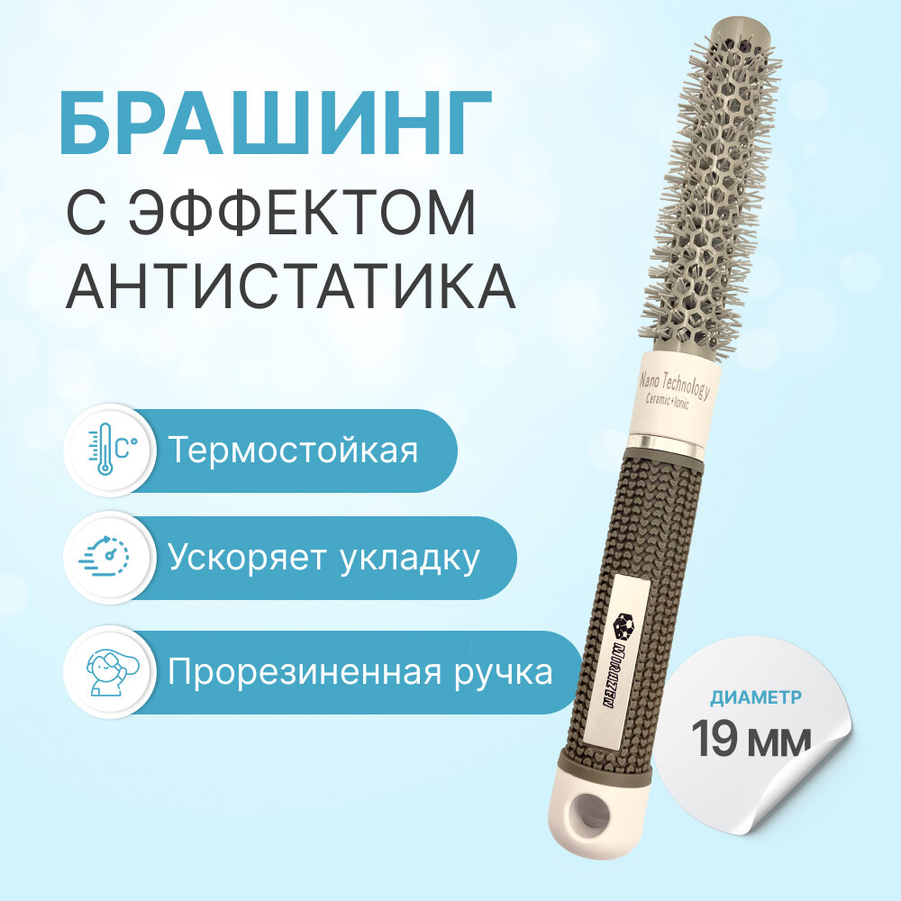 Купить Круглая расческа брашинг для укладки волос с керамическим покрытием, термобрашинг Ceramic + Ion, прорезиненная ручка, 19 мм