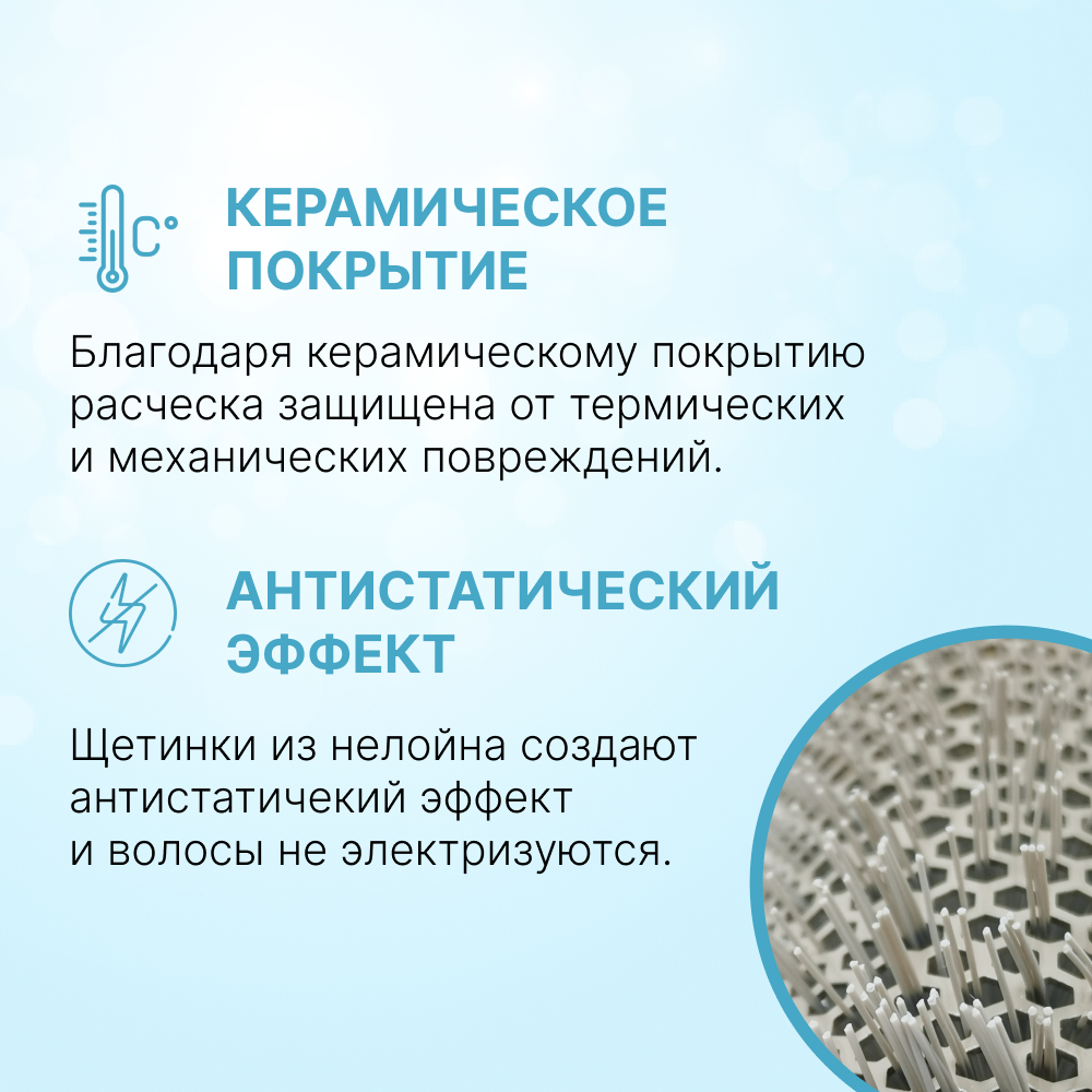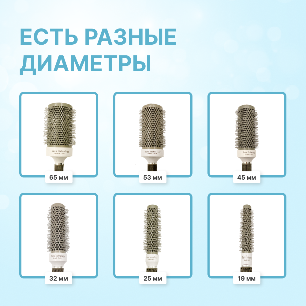 Круглая расческа брашинг для укладки волос премиум с керамическим покрытием и натуральной щетиной, термобрашинг Ceramic + Ion, 53 мм