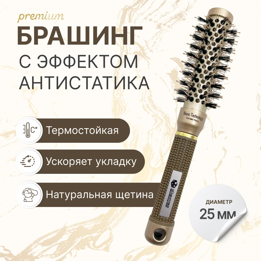 Купить Круглая расческа брашинг для укладки волос премиум с керамическим покрытием и натуральной щетиной, термобрашинг Ceramic + Ion, 25 мм