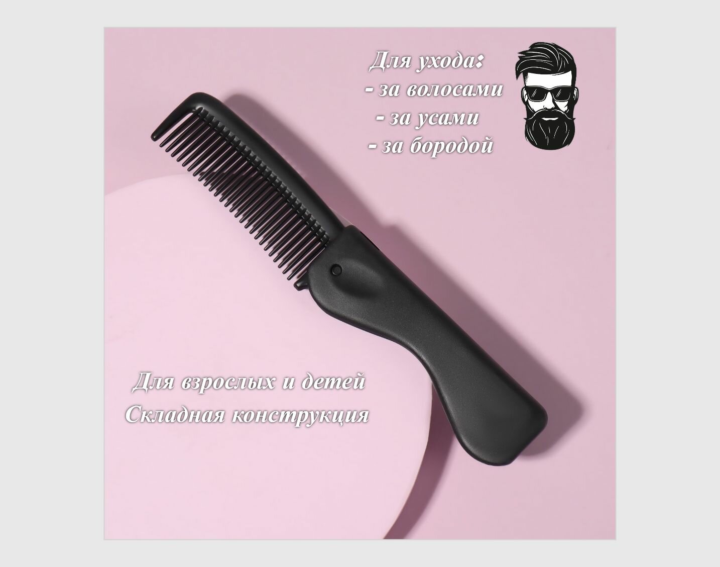 Расчёска складная, 17.5 x 3 см, цвет чёрный
