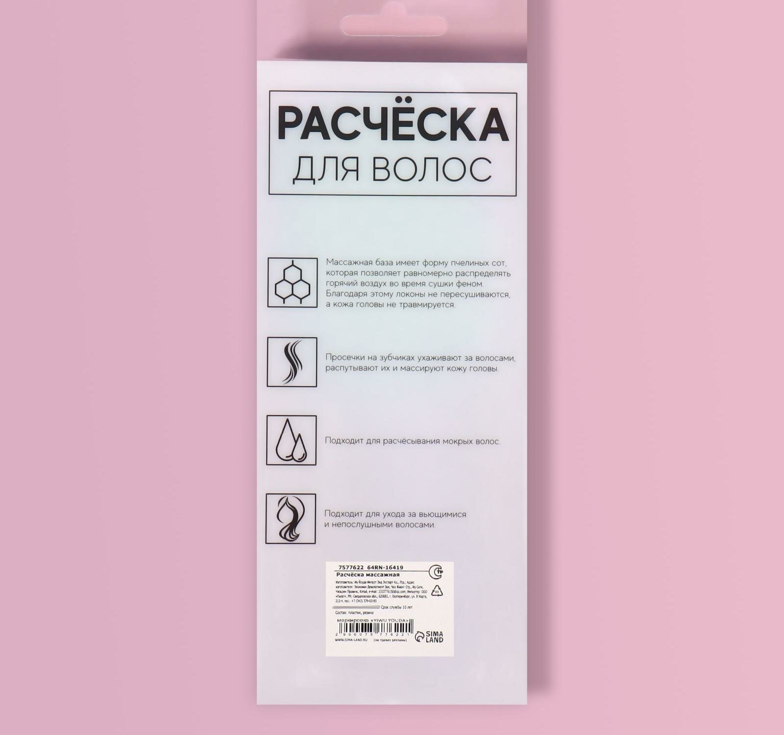 Расчёска массажная №21 прям-к 8,5*20,5(±1)см микс/прозр кор PVC QF 7577622 интересное: