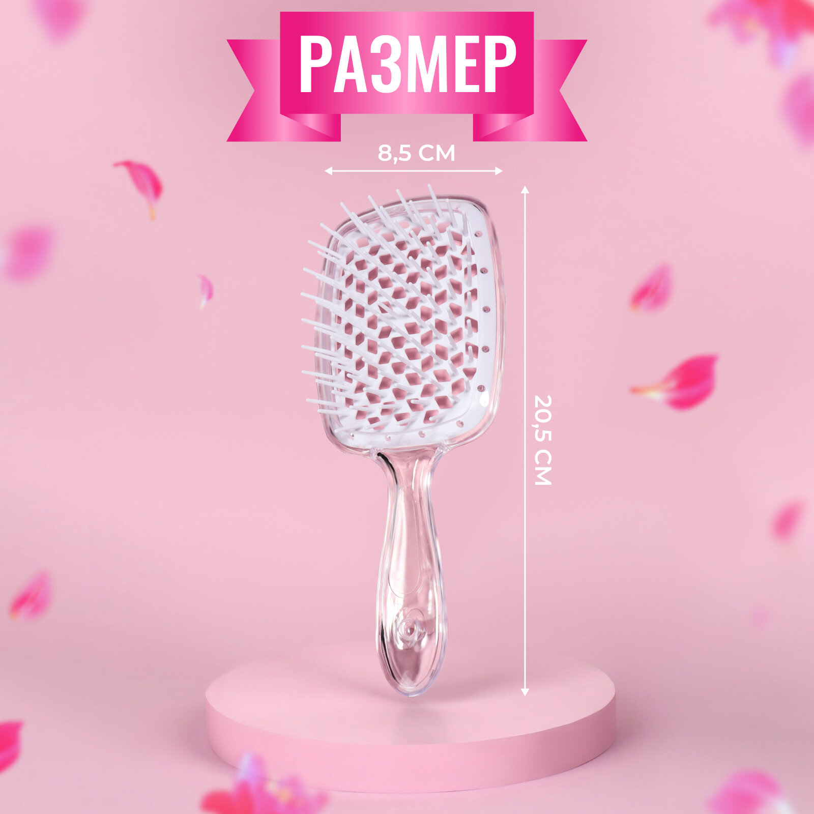 Расчёска массажная, широкая, вентилируемая, 8.5 x 20.5 см, PVC коробка, цвет прозрачный
