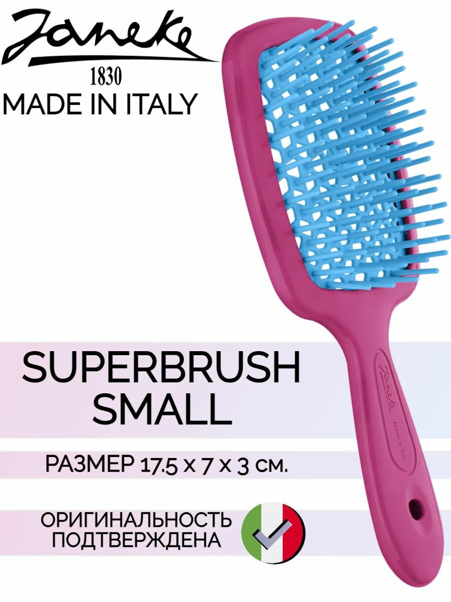 Купить Щетка пластиковая Janeke Superbrush малая, фуксия и синий, 17.5 x 7 x 3 см