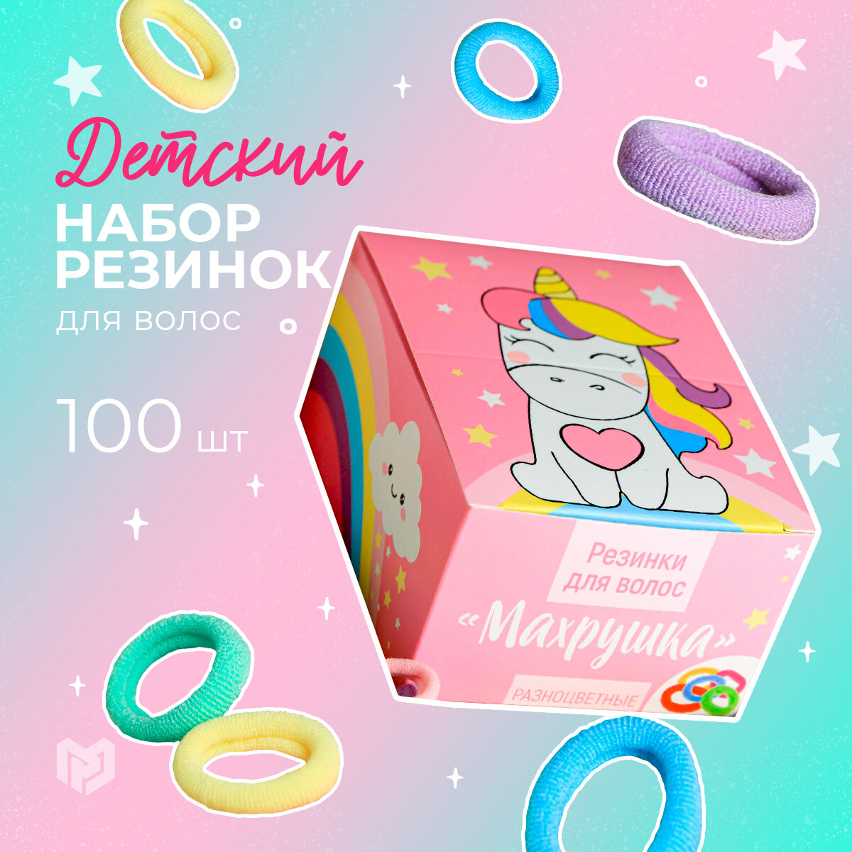 Купить Резинки для волос , набор «Махрушка», единорог 100 шт.