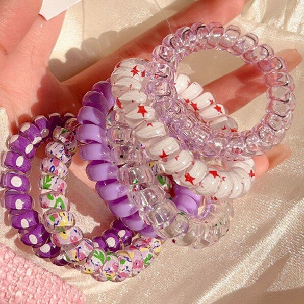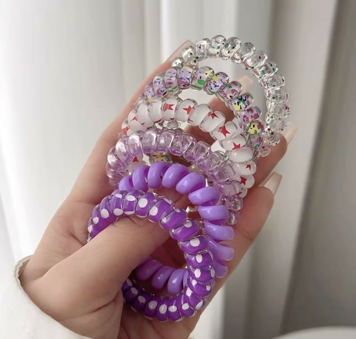 Набор резинок 5 шт./ Силиконовая резинка для волос/ Резинка спиралька/Резинка браслет/Резинка для волос