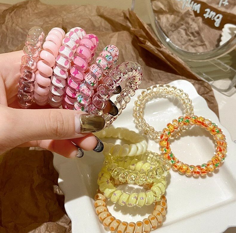 Набор резинок 6 шт./ Силиконовая резинка для волос/ Резинка спиралька/Резинка браслет/Резинка для волос