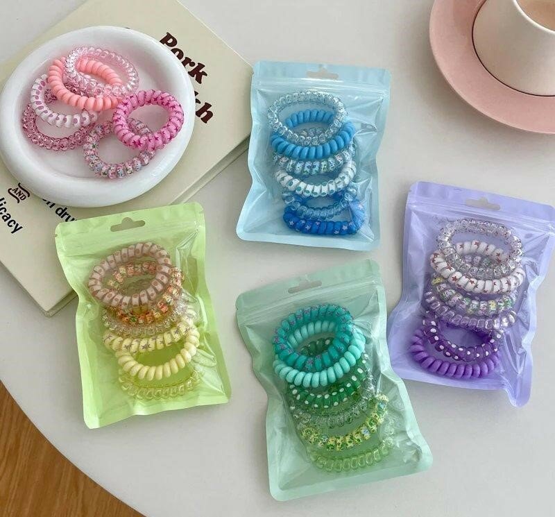 Набор резинок 5 шт./ Силиконовая резинка для волос/ Резинка спиралька/Резинка браслет/Резинка для волос
