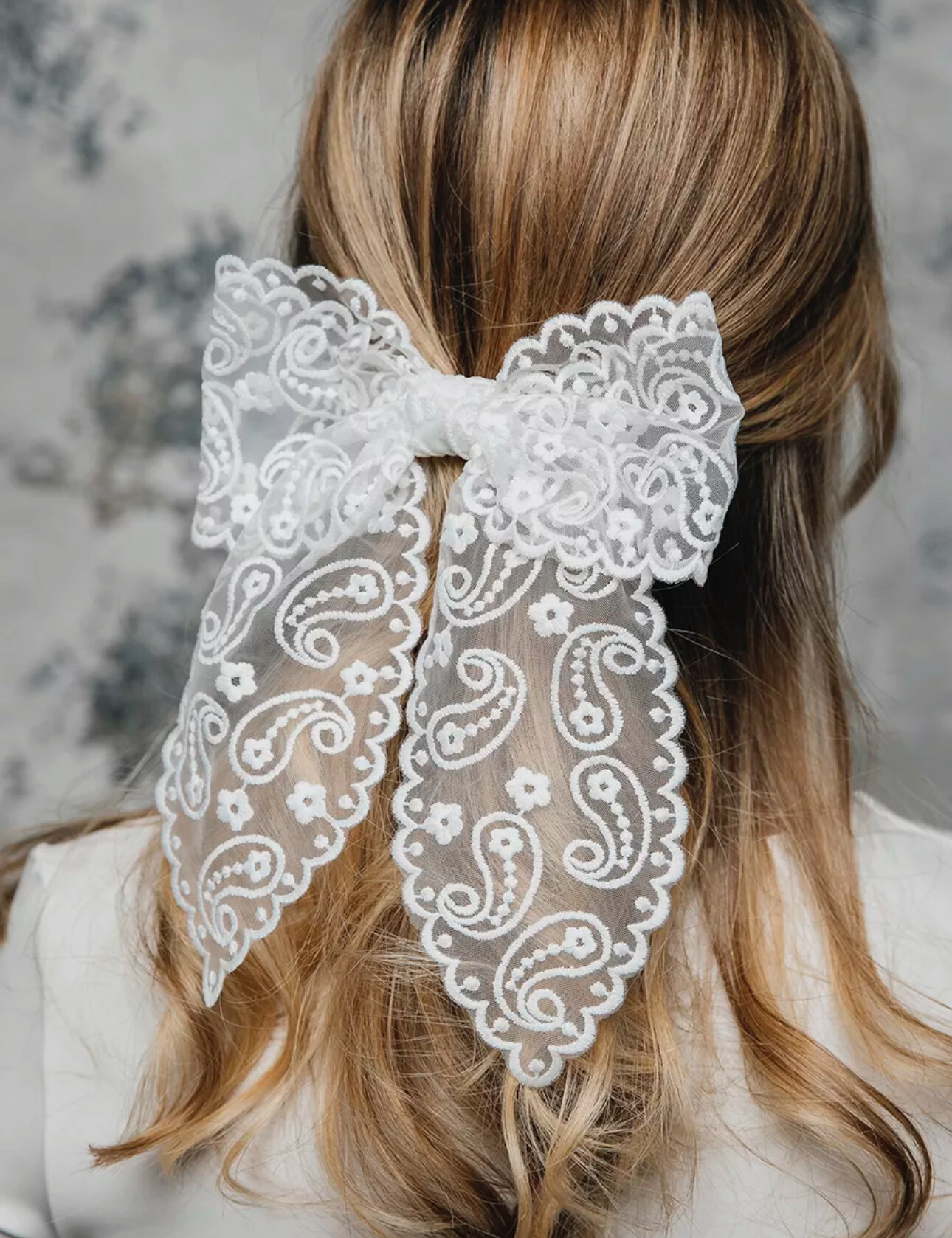 Бант для волос на заколке/Кружевной/Ажурный/Белый