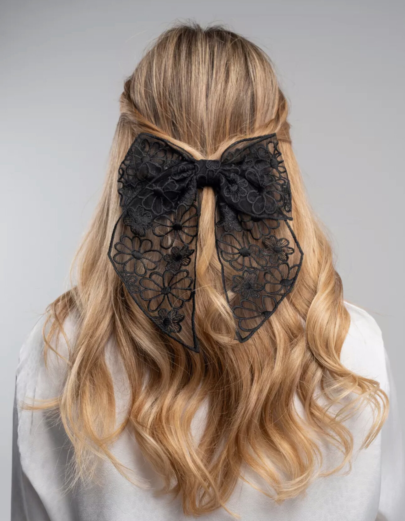 Купить Бант для волос на заколке/Кружевной/Ажурный/Черный