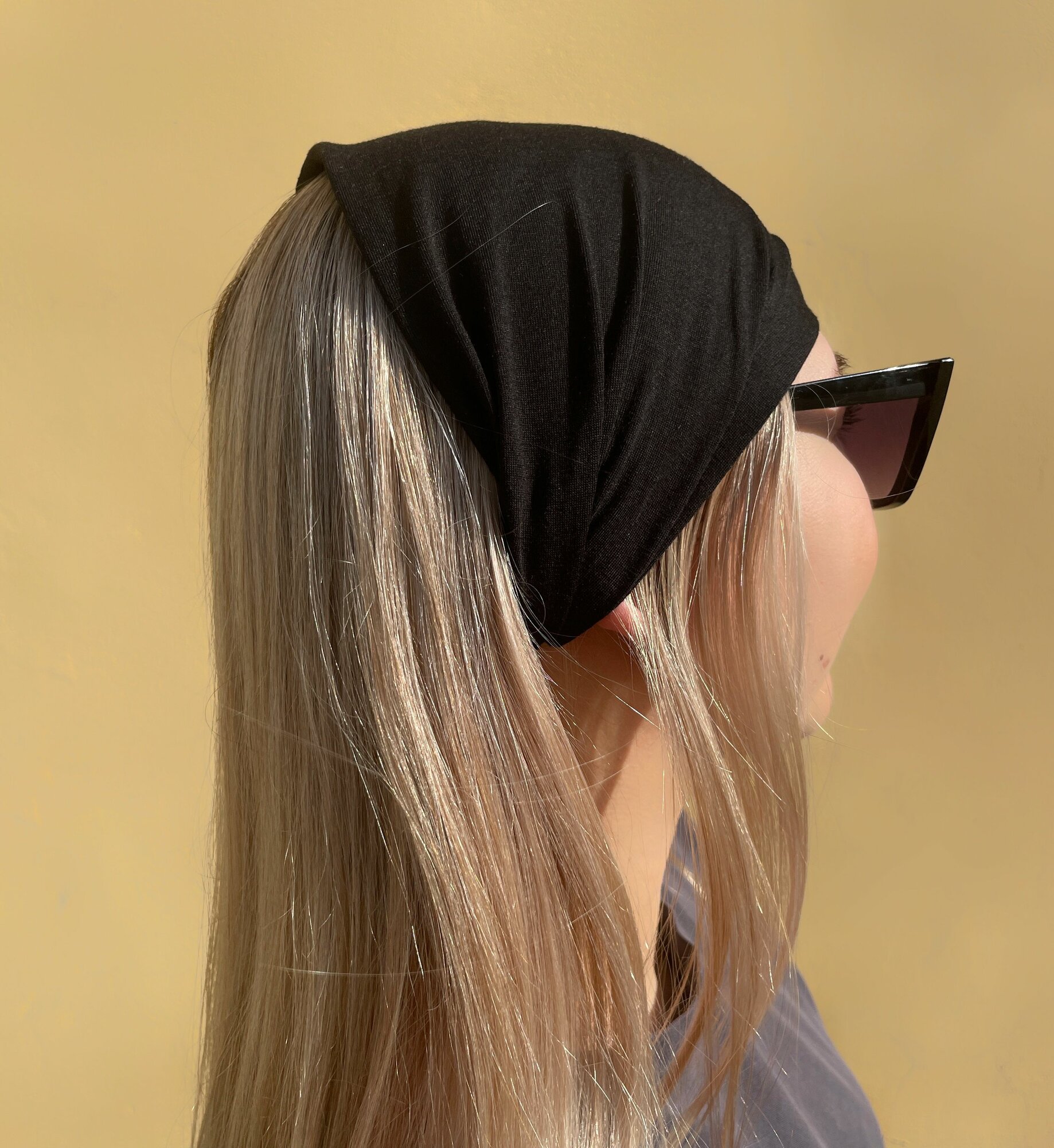 СохранитьПовязка бандана косынка на голову хлопковая однотонная эластичная черная на резинке интересное: