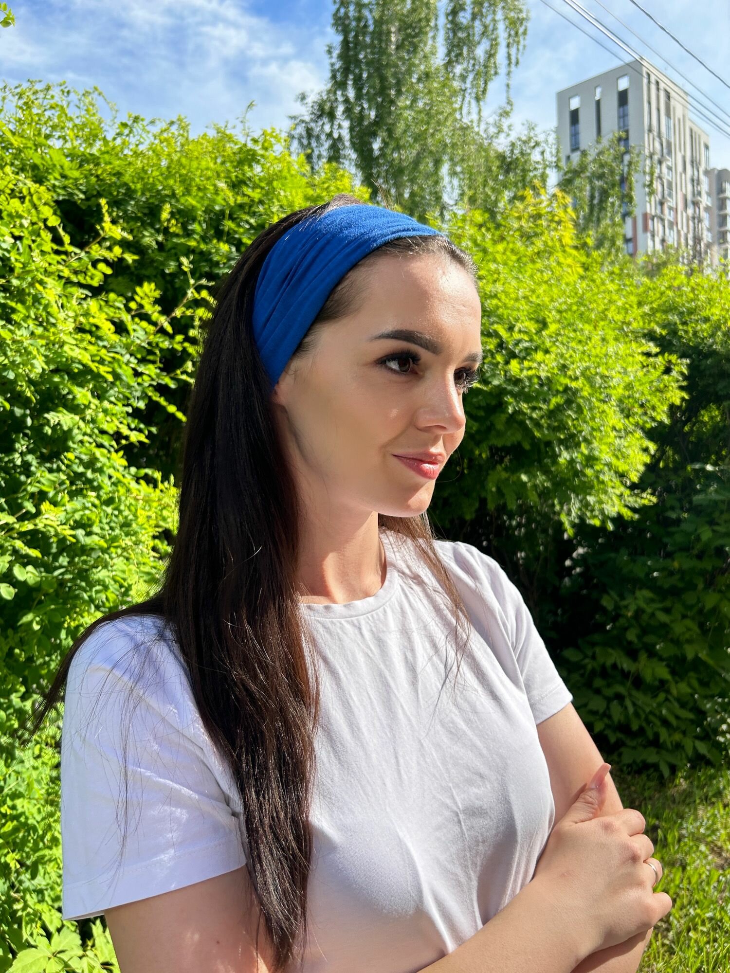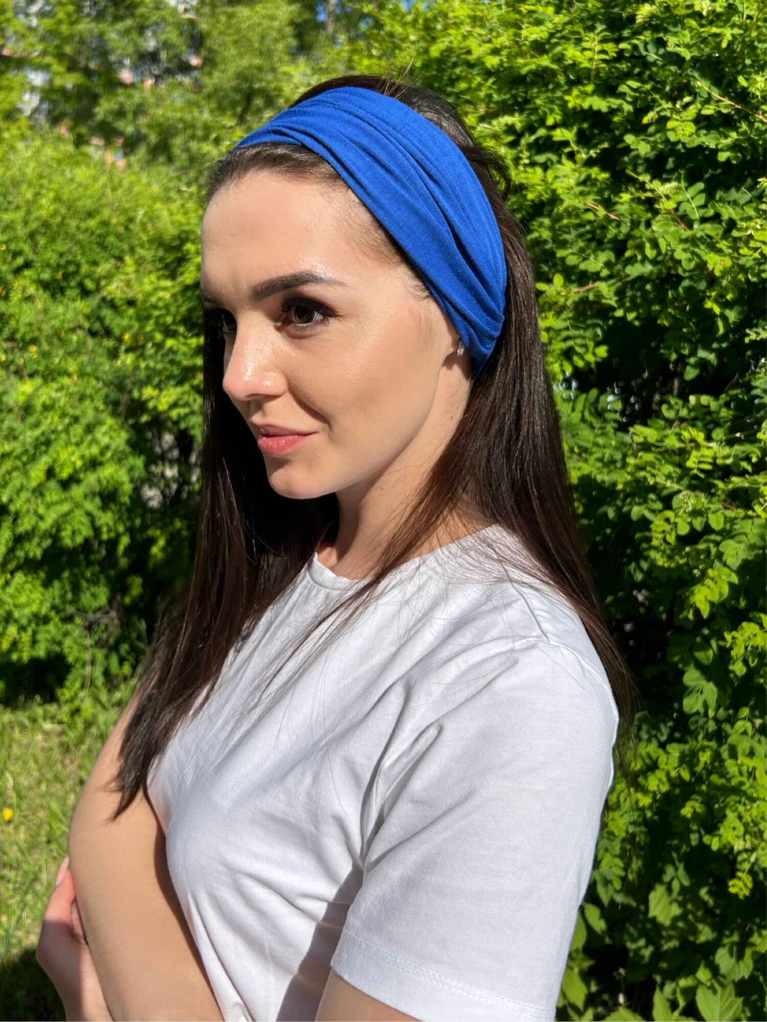 СохранитьПовязка бандана косынка на голову хлопковая ярко-синяя эластичная на резинке интересное: