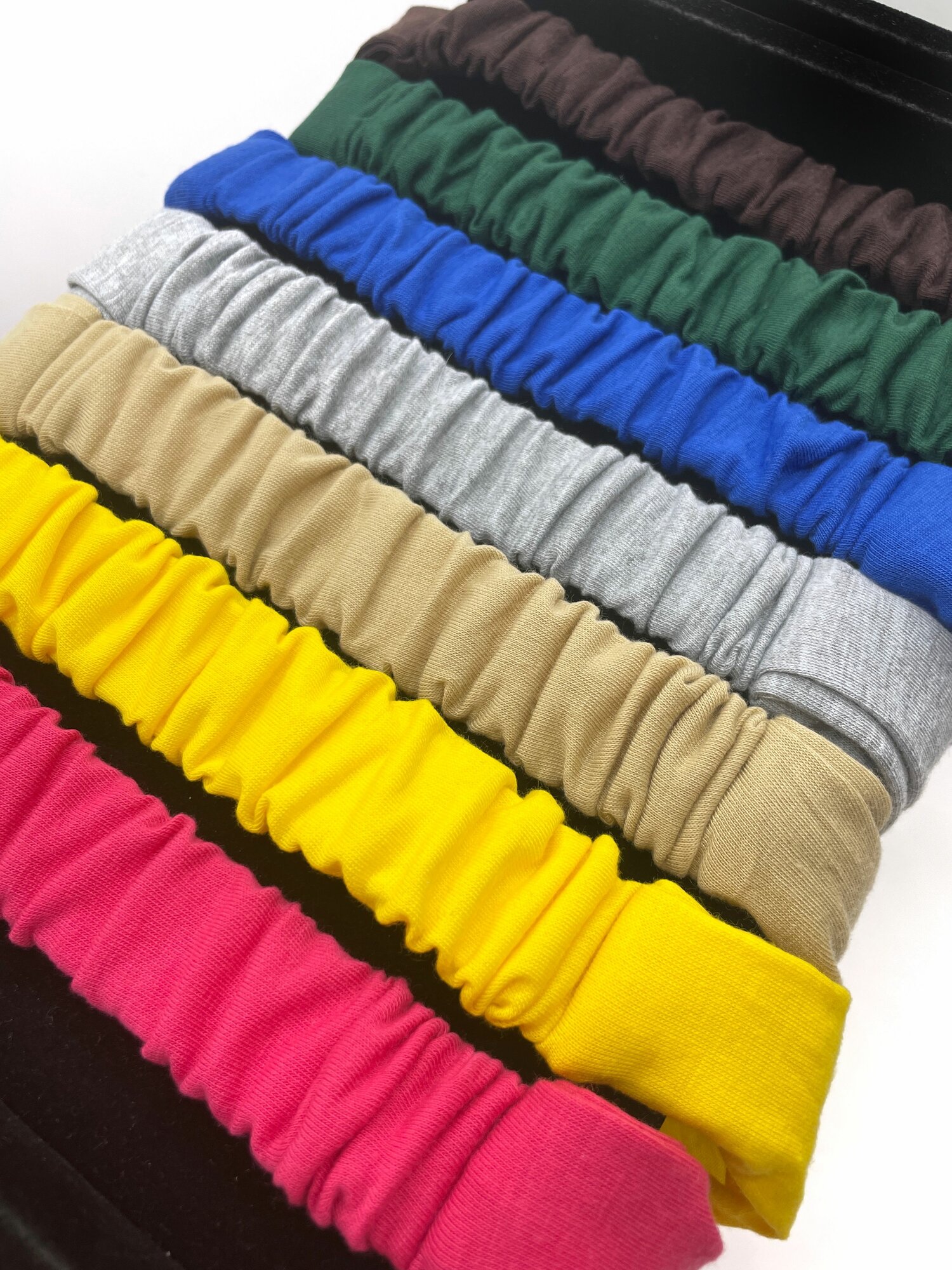 Повязка бандана косынка на голову хлопковая жёлтая однотонная эластичная на резинке