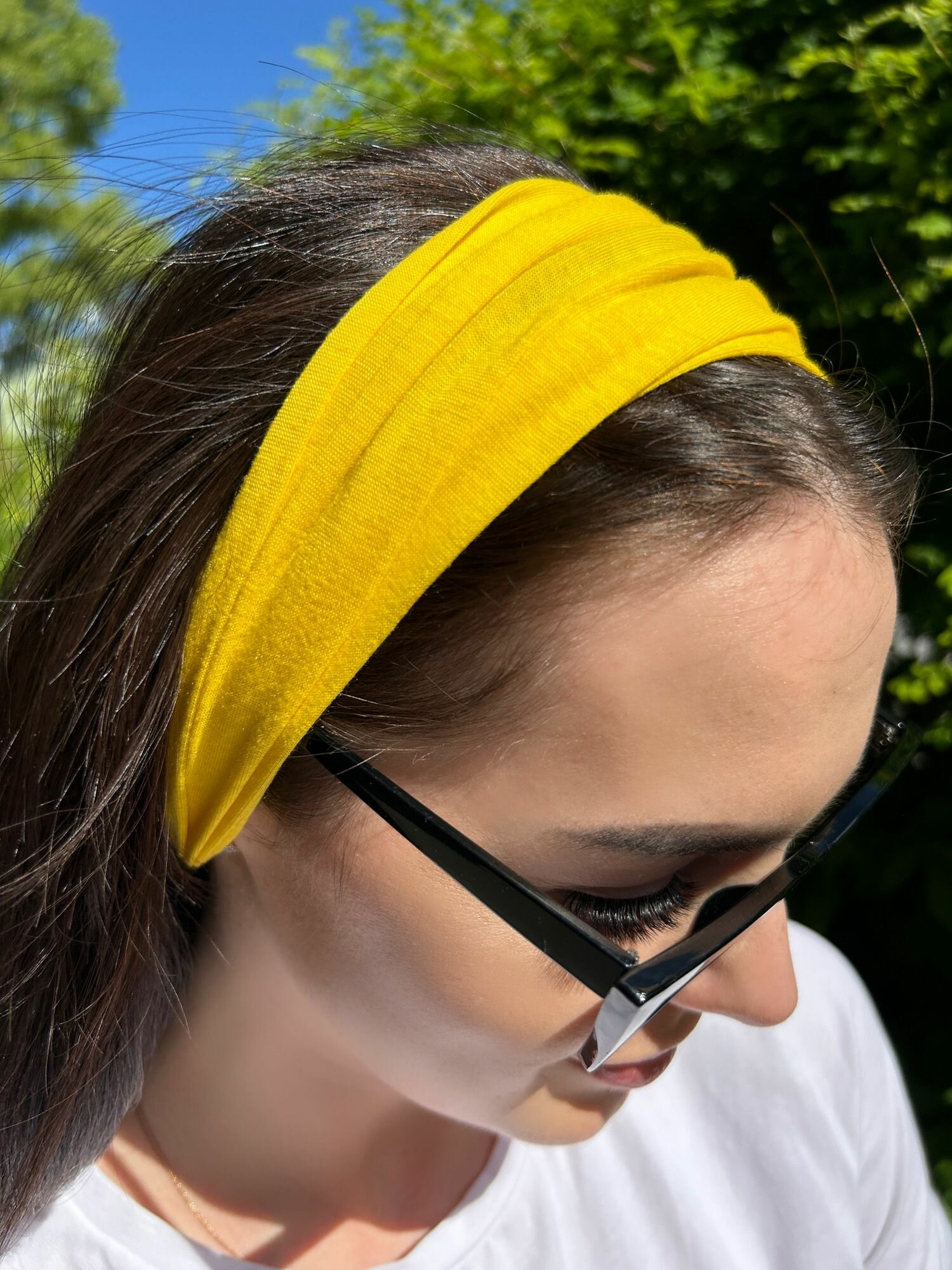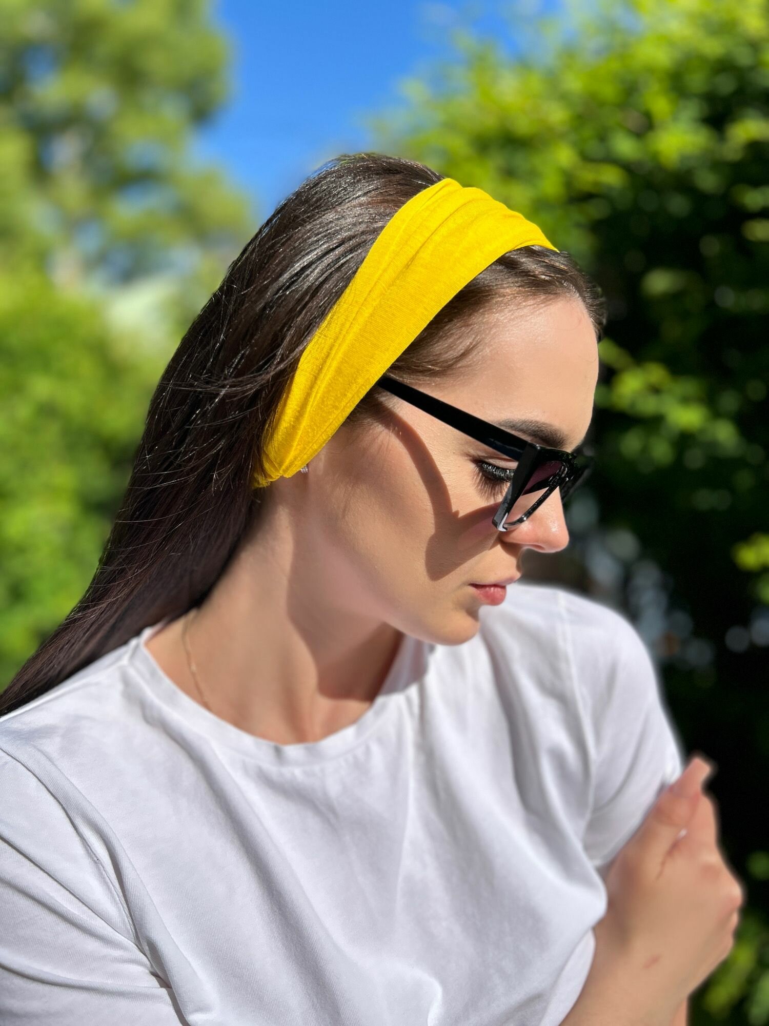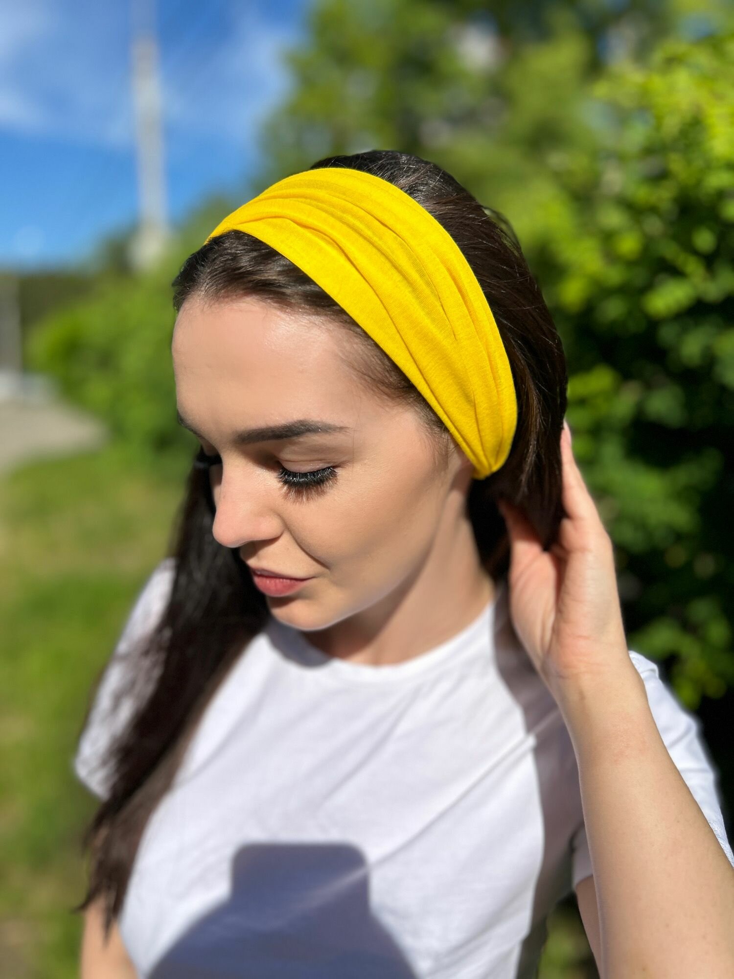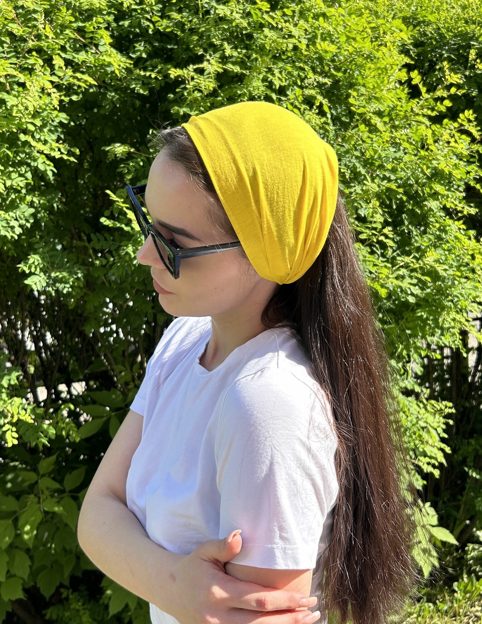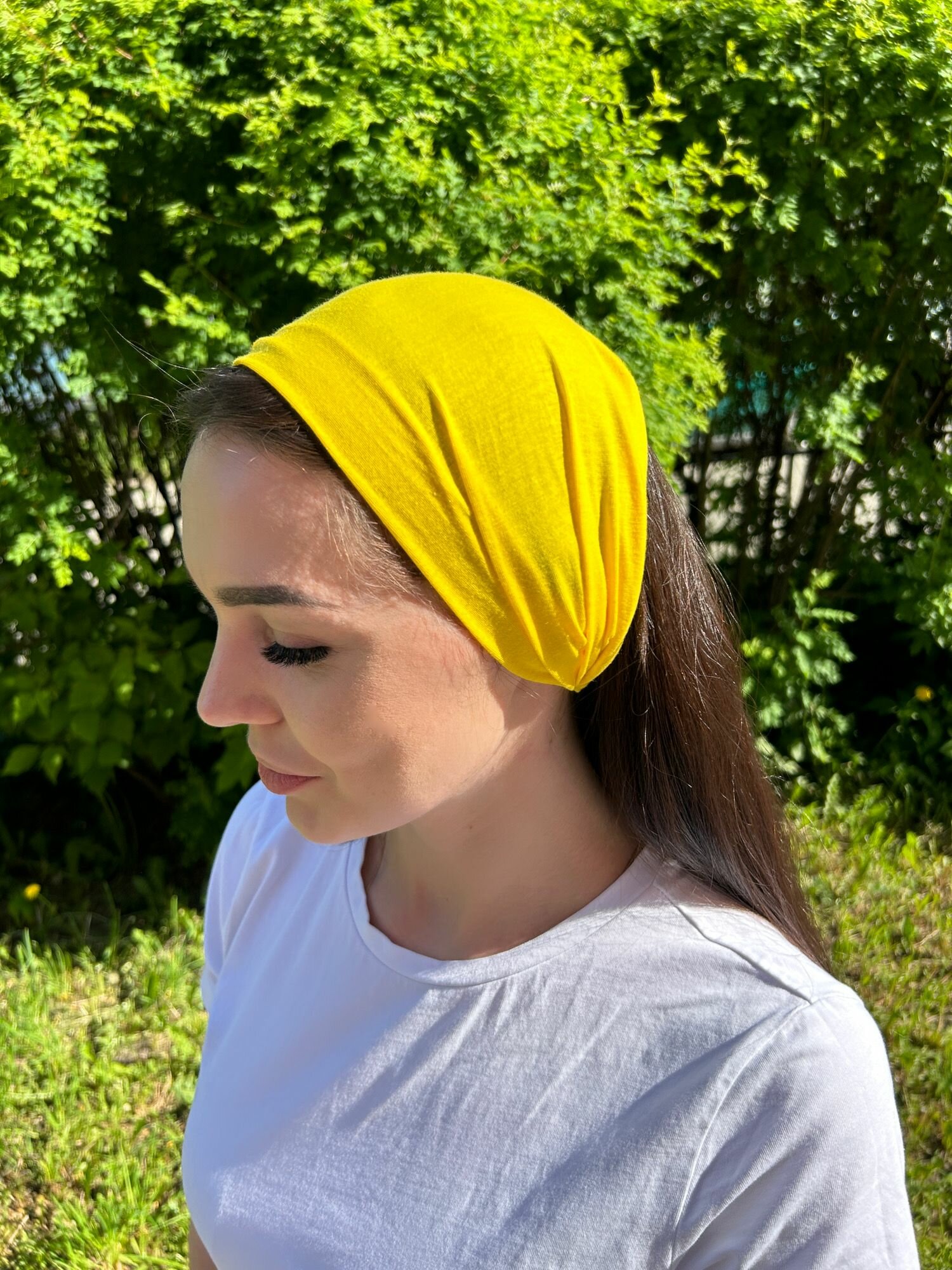 СохранитьПовязка бандана косынка на голову хлопковая жёлтая однотонная эластичная на резинке интересное: