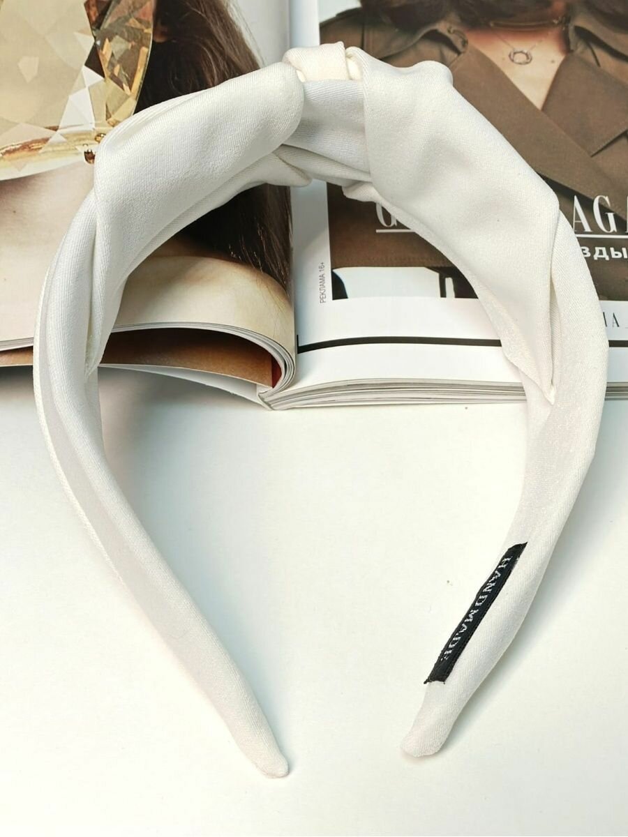 Ободок для волос женский широкий тканевый с узлом топленое молоко
