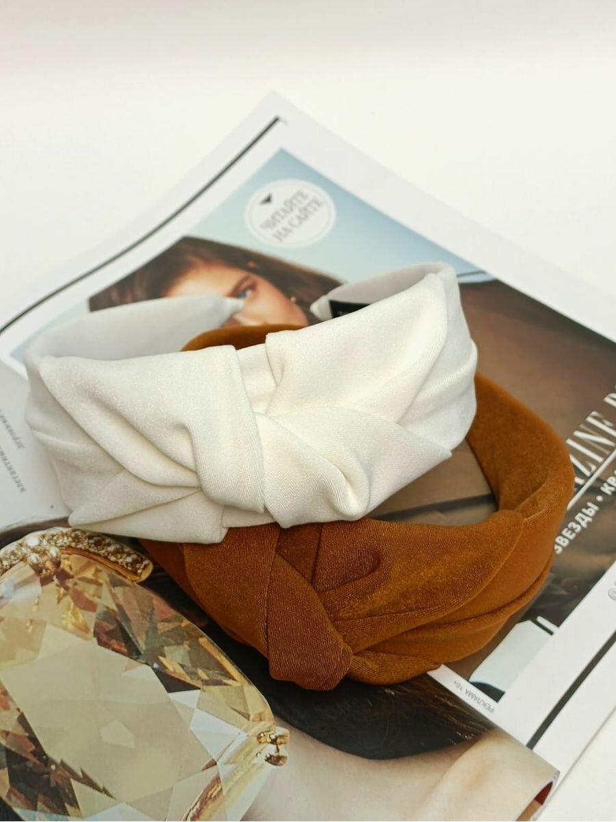 Ободок для волос женский широкий тканевый с узлом коричневый