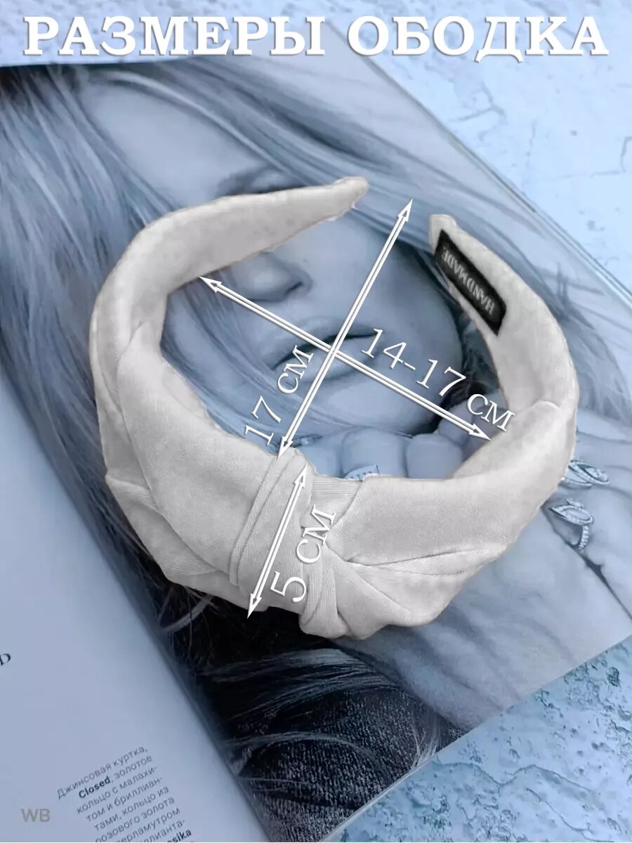 Ободок для волос женский широкий тканевый с узлом белый