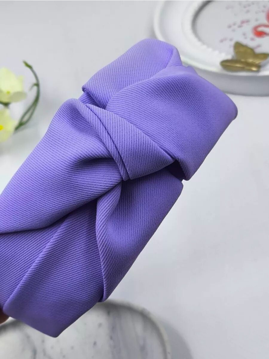 Ободок для волос женский широкий тканевый с узлом сиреневый