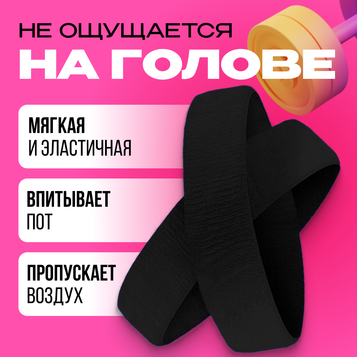 Спортивная повязка на голову уши полоска для бега спорта черная интересное: