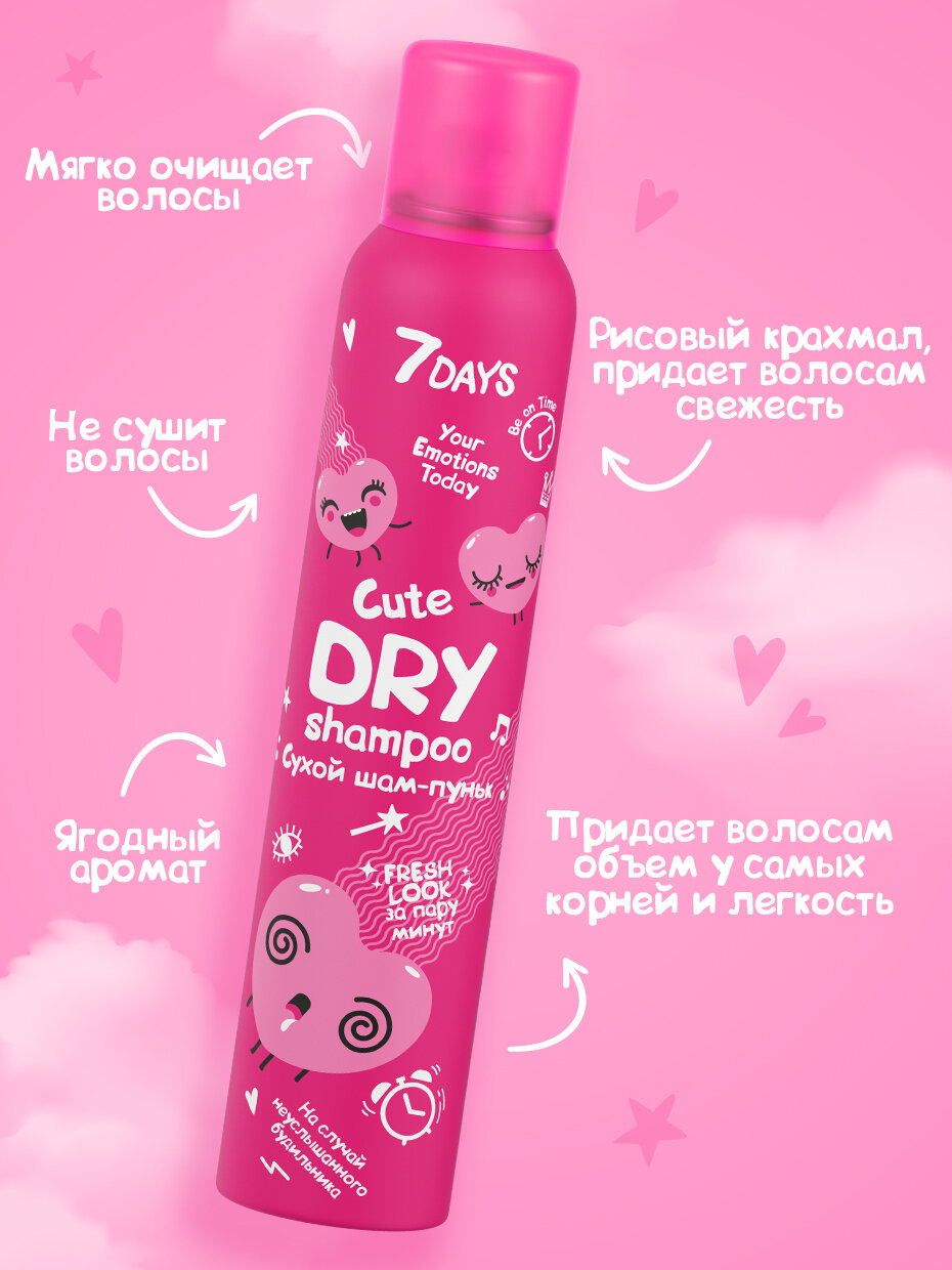 Сухой шампунь для волос 7DAYS CUTE + кондиционер 2в1, 200 мл.