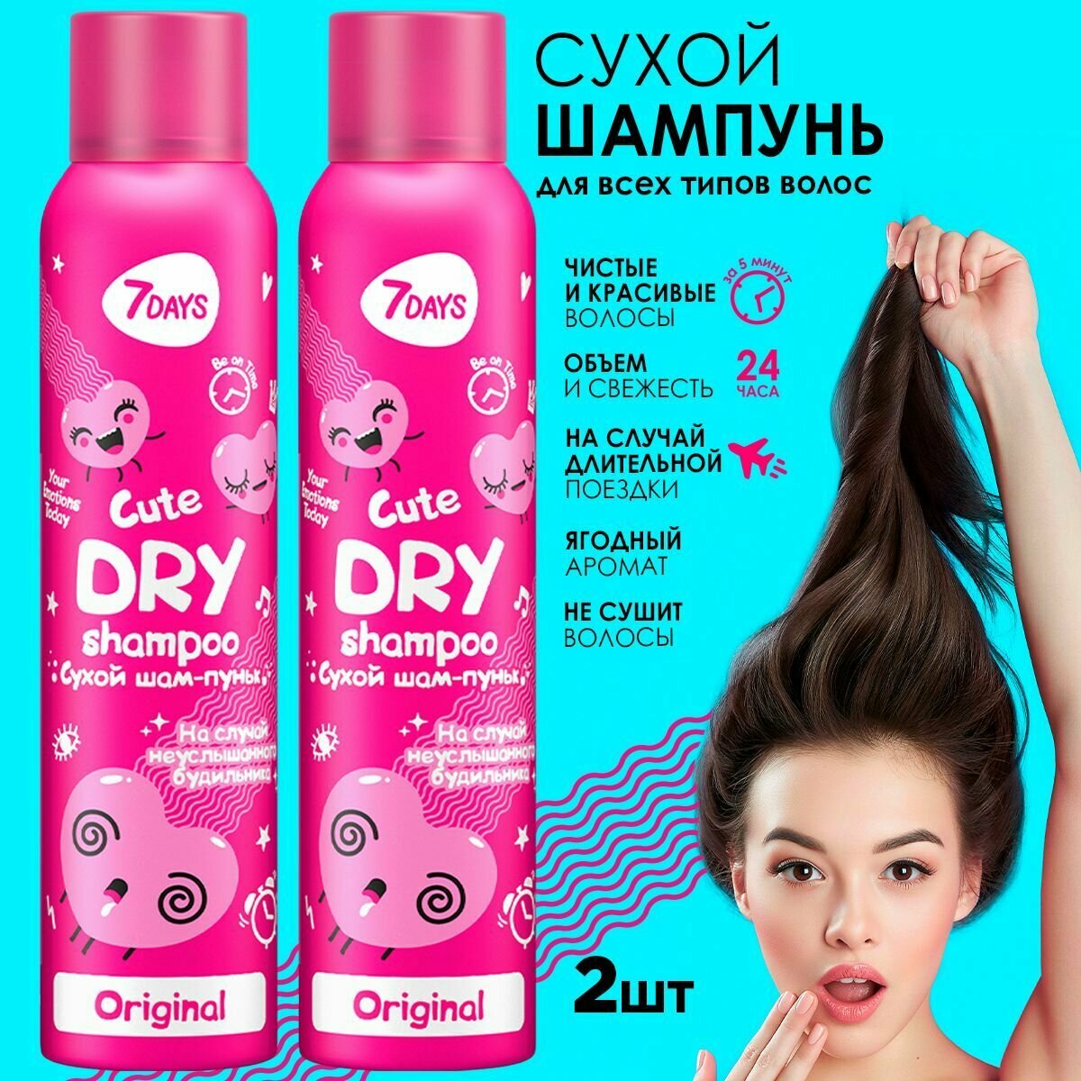 Сухой шампунь для волос, набор 2 шт 7DAYS CUTE шампунь + кондиционер 2в1