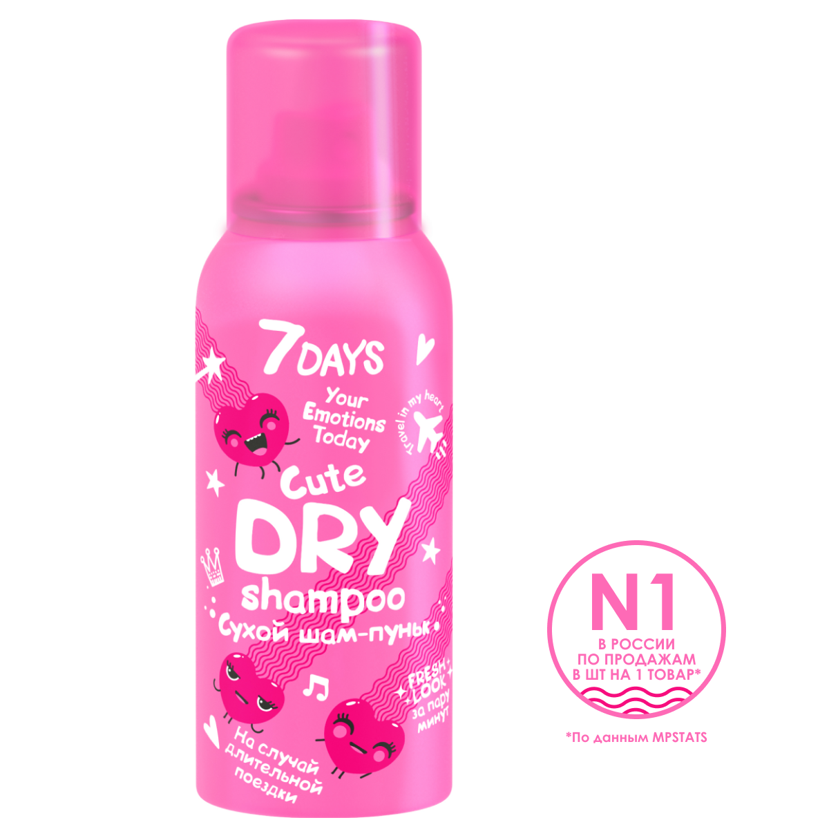 7DAYS Сухой шампунь для объема волос, для всех типов волос, travel формат CUTE 2в1 мгновенное очищение