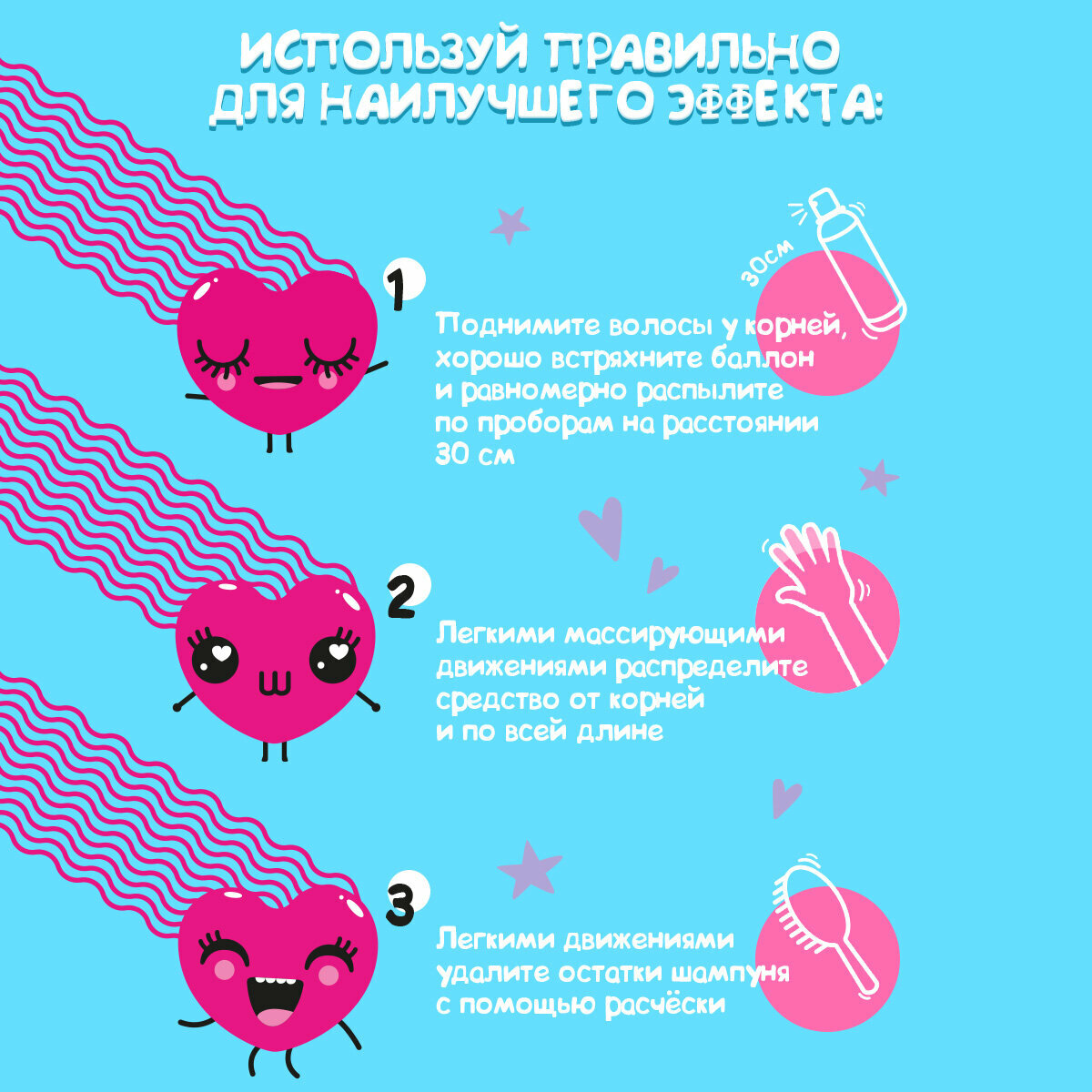 | Способ применения | Тщательно встряхни баллон и распыли средство на сухие волосы с расстояния 20-30 см, уделяя особое внимание корням. Подожди 30-60 сек., затем массирующими движениями распредели средство по волосам. Тщательно расчеши волосы расческой. |