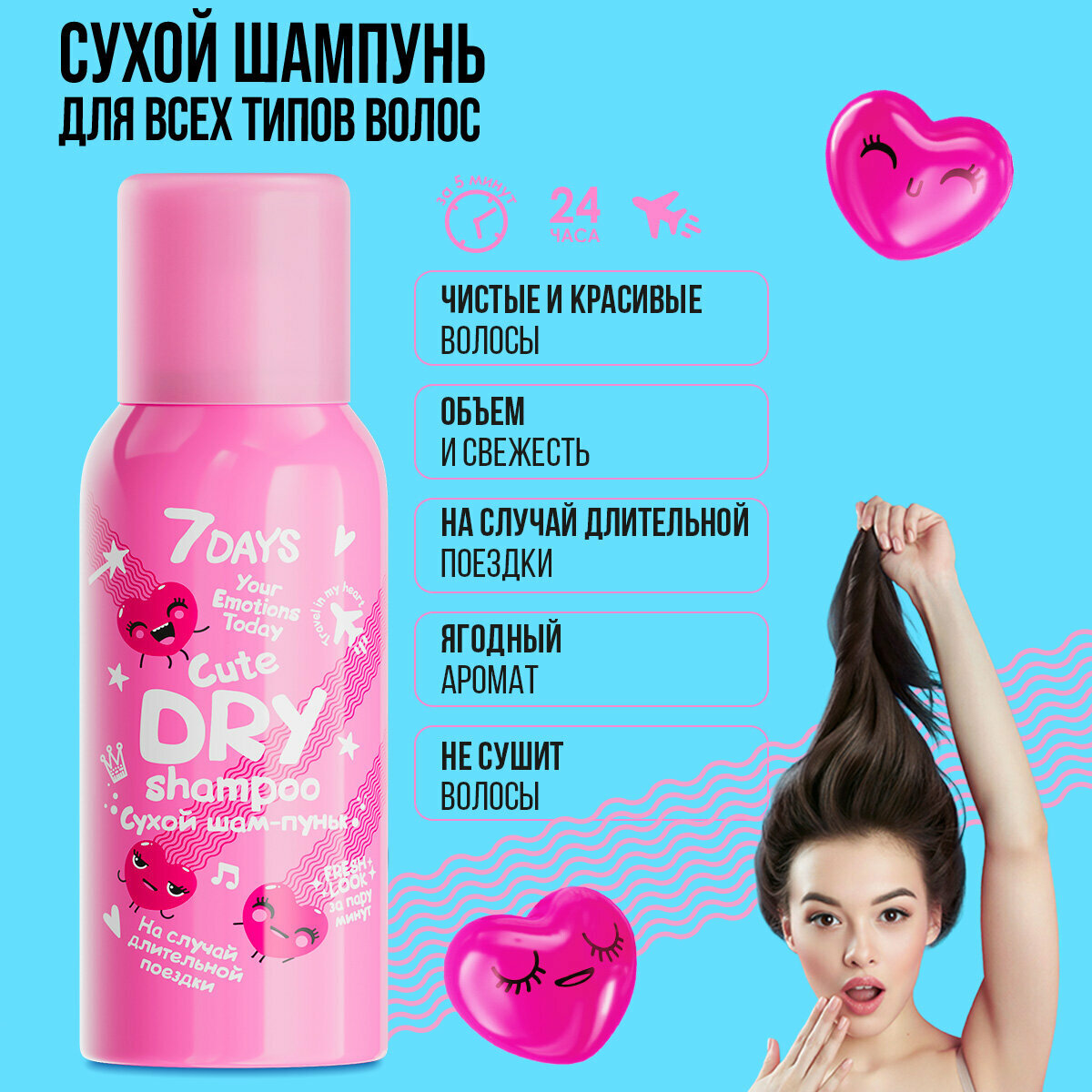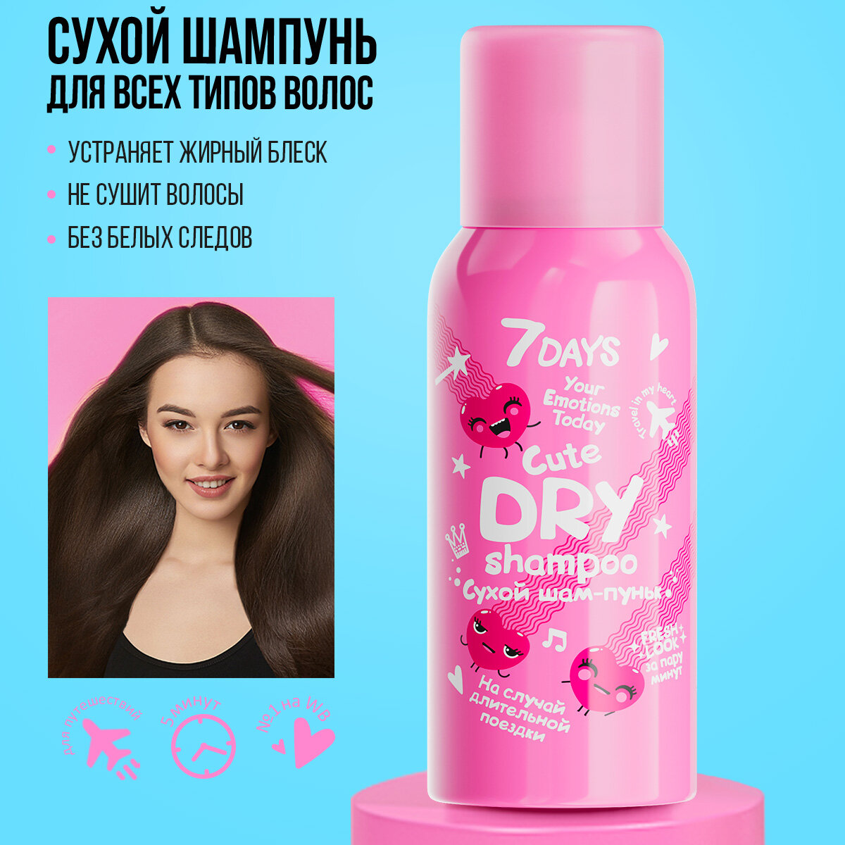 Сухой шампунь для волос, набор 2 шт 7DAYS CUTE шампунь + кондиционер 2в1