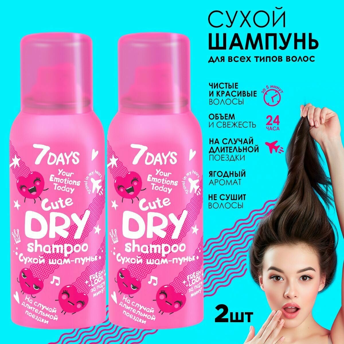 Сухой шампунь для волос, набор 2 шт 7DAYS CUTE шампунь + кондиционер 2в1